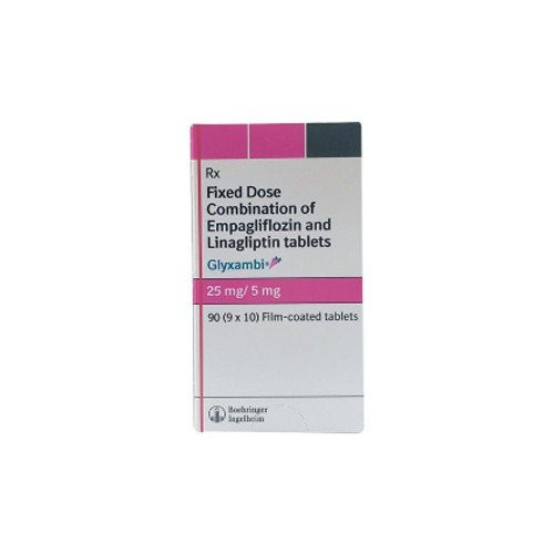 GLYXAMBI 25/5MG is a combination oral medication containing Empagliflozin (an SGLT2 inhibitor) and Linagliptin (a DPP-4 inhibitor). It is indicated as an adjunct to diet and exercise to improve glycemic control in adults with type 2 diabetes mellitus. Empagliflozin works by increasing glucose excretion in the urine, while Linagliptin enhances glucose-dependent insulin secretion and suppresses glucagon secretion by inhibiting the breakdown of incretin hormones.