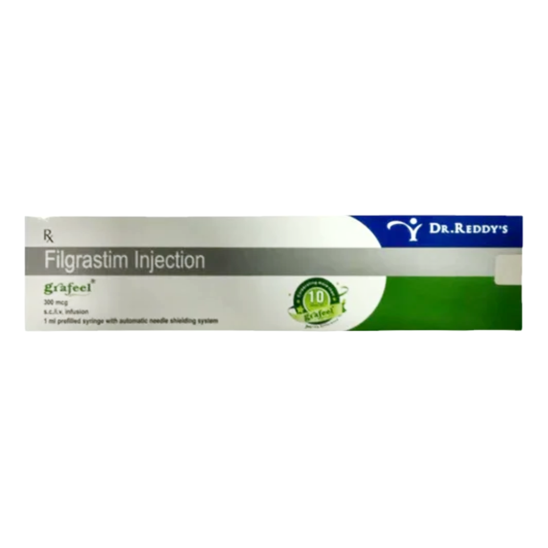 Grafeel 300mcg Injection PFS (Pre-filled Syringe) contains Filgrastim, a recombinant human granulocyte colony-stimulating factor (G-CSF). This biological agent functions by stimulating the bone marrow to produce, mature, and release neutrophils, which are vital white blood cells essential for combating bacterial and fungal infections. Filgrastim achieves this by binding to specific G-CSF receptors on hematopoietic stem cells and myeloid progenitor cells, thereby promoting their proliferation and differentiation.