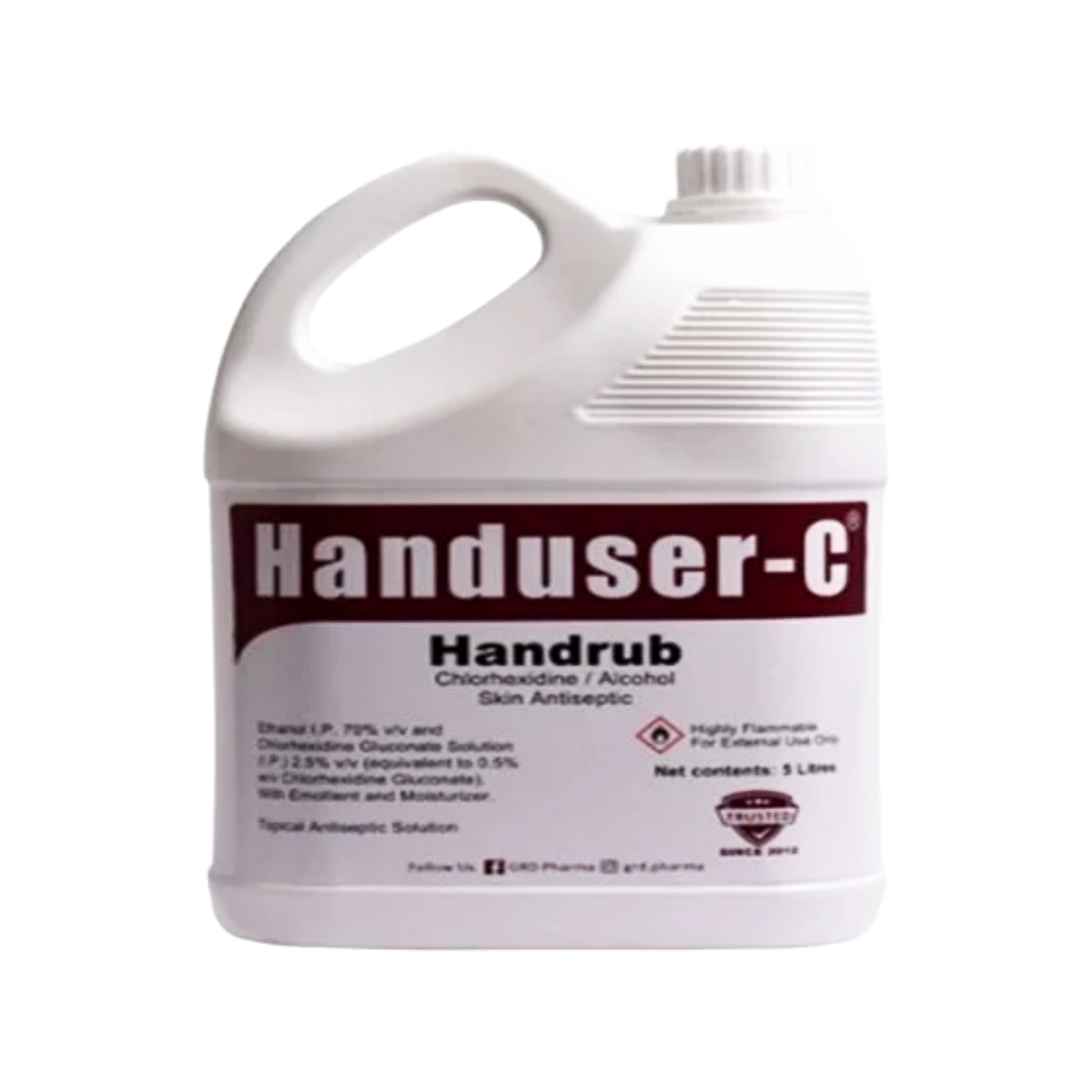 Handuser C is an antiseptic hand rub formulated for rapid and effective hand disinfection, particularly in healthcare settings and situations where soap and water are not readily available. Typically alcohol-based, it works by denaturing proteins and dissolving lipids, effectively killing a broad spectrum of transient microorganisms, including bacteria, viruses, and fungi, on the skin surface. This product is designed to reduce the microbial load on hands, thereby minimizing the risk of cross-contamination and infection transmission. Its quick-drying formula often includes emollients to help prevent skin dryness and irritation with frequent use, maintaining skin integrity. The 500ml size is convenient for individual use or placement in common areas.