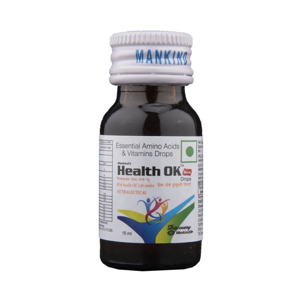 HEALTH OK DROPS 15ML is a pediatric multivitamin and multimineral supplement specifically formulated for infants and young children. These drops provide a balanced blend of essential vitamins and minerals crucial for healthy growth, development, and immune system support during critical early years. Key nutrients often include Vitamin A, C, D, E, and B-complex vitamins, along with minerals like zinc and iron, which are vital for bone development, cognitive function, and preventing common nutritional deficiencies. The liquid drop formulation ensures easy and accurate administration for pediatric use, aiding in the prevention of growth faltering and supporting overall vitality in growing children. It helps bridge dietary gaps and ensures optimal nutrient intake for robust health.