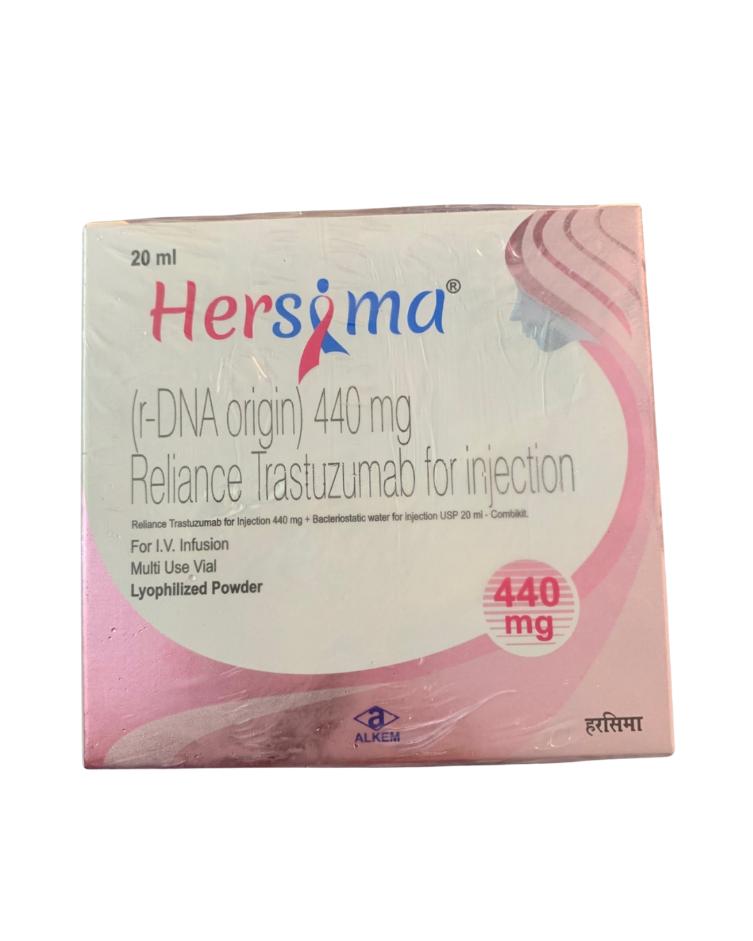 HERSIMA 440 MG INJECTION VIAL is a targeted therapy, specifically a monoclonal antibody, designed to bind to the human epidermal growth factor receptor 2 (HER2) protein. HER2 is a protein found on the surface of some cancer cells, and its overexpression can lead to aggressive tumor growth. By selectively binding to HER2, HERSIMA inhibits the growth and proliferation of HER2-positive cancer cells, making it a crucial treatment in certain types of breast and gastric cancers.