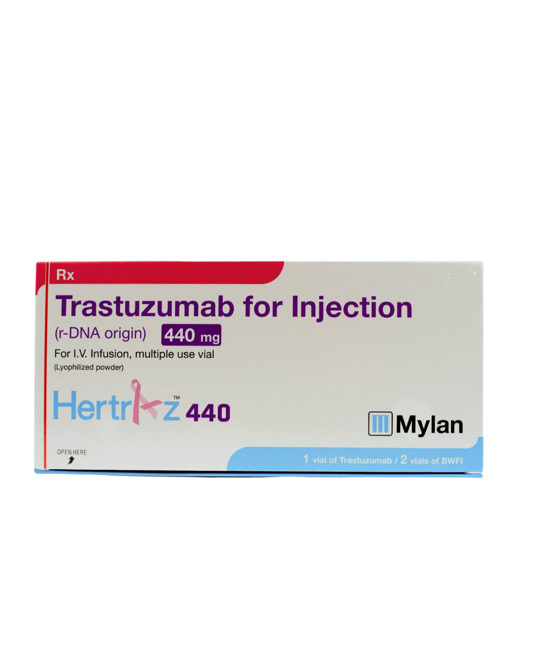 HERTRAZ 440 MG INJ. VIAL. is a targeted biological therapy containing trastuzumab, a recombinant humanized monoclonal antibody that specifically binds to the extracellular domain of the human epidermal growth factor receptor 2 (HER2) protein. HER2 is a proto-oncogene that, when overexpressed, plays a critical role in the growth and proliferation of certain aggressive cancers, particularly breast and gastric cancers. By binding to HER2, trastuzumab inhibits downstream signaling pathways, leading to cell cycle arrest and apoptosis in HER2-overexpressing tumor cells. It also mediates antibody-dependent cell-mediated cytotoxicity (ADCC), recruiting immune cells to destroy cancer cells. This targeted approach makes Hertraz a highly effective treatment for HER2-positive malignancies, often used in combination with chemotherapy or as monotherapy, significantly improving patient outcomes.