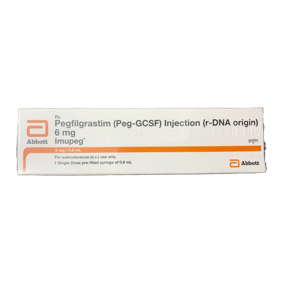 Imupeg 6mg Injection is a pegylated form of granulocyte colony-stimulating factor (G-CSF), a naturally occurring protein that stimulates the bone marrow to produce more white blood cells, specifically neutrophils. By increasing neutrophil counts, Imupeg helps to reduce the incidence and duration of febrile neutropenia, a serious complication of myelosuppressive chemotherapy that significantly increases the risk of severe infection. It provides sustained neutrophil support with a single dose per chemotherapy cycle, thereby allowing patients to maintain their chemotherapy schedules and improving overall treatment outcomes.