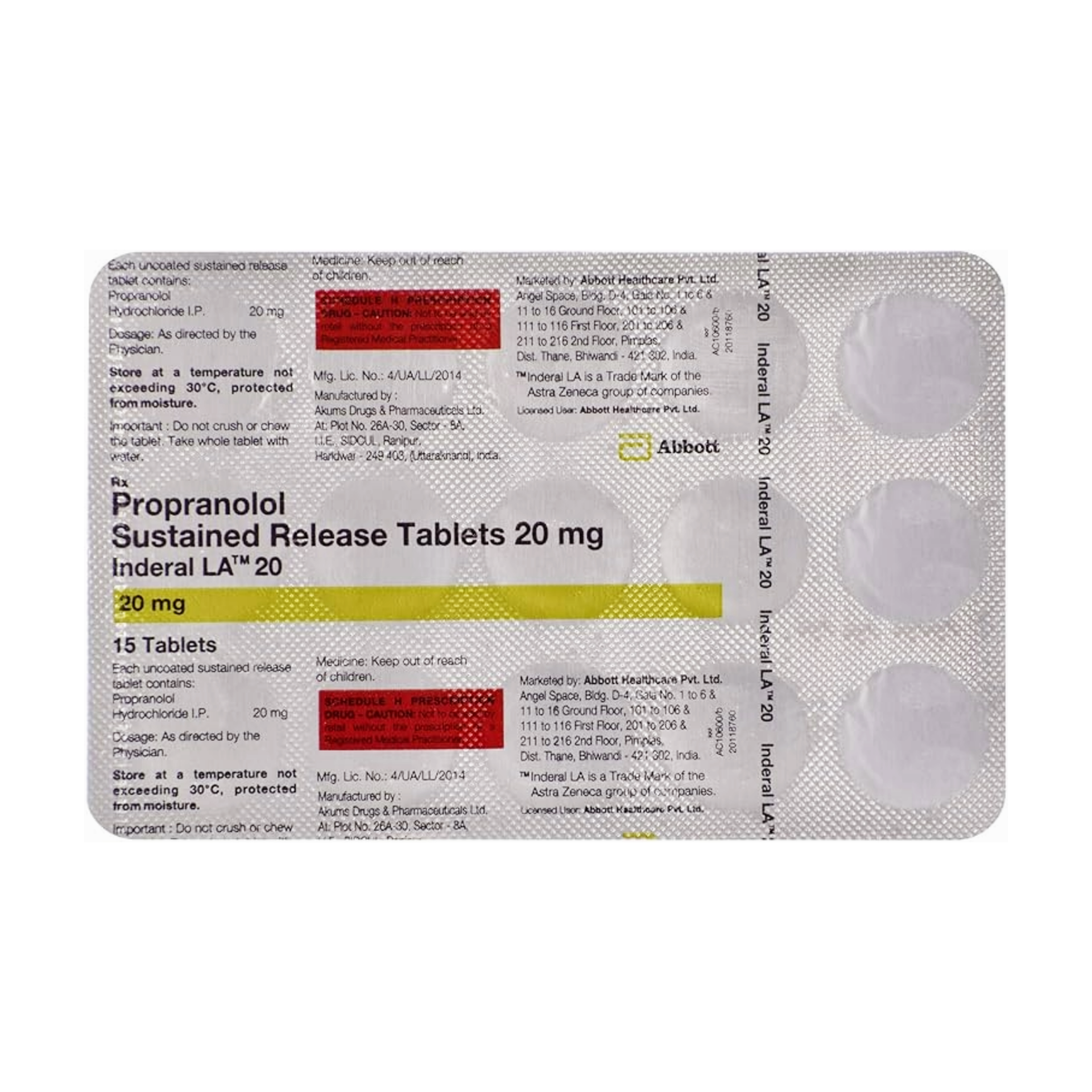 Salt Composition: Propranolol (20mg)