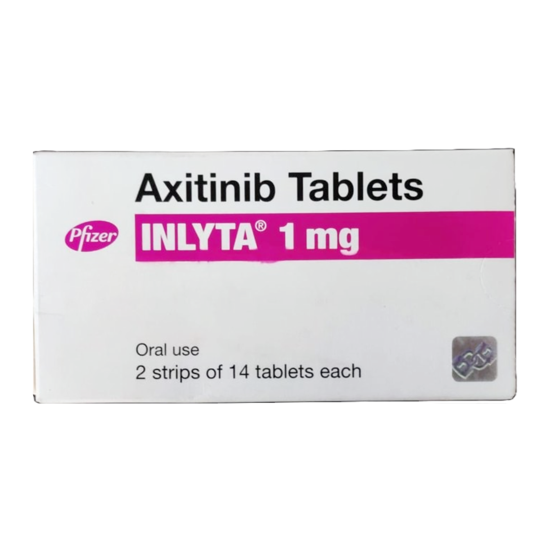 Inlyta 1mg Tablet, containing axitinib, is an oral tyrosine kinase inhibitor (TKI) specifically designed to target vascular endothelial growth factor receptors (VEGFR-1, VEGFR-2, and VEGFR-3). By inhibiting these receptors, axitinib disrupts angiogenesis, the process of new blood vessel formation that tumors need to grow and spread. This targeted action helps to slow tumor progression and is primarily indicated for the treatment of advanced renal cell carcinoma after failure of one prior systemic therapy. Its mechanism focuses on starving the tumor of its blood supply, thereby inhibiting its growth and metastatic potential, making it a crucial agent in targeted cancer therapy.