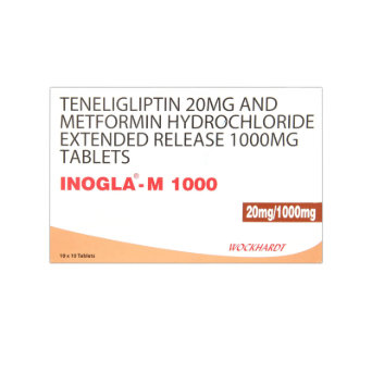 INOGLA M 1000 is a combination oral antidiabetic medication, typically comprising a dipeptidyl peptidase-4 (DPP-4) inhibitor (a "gliptin" like Linagliptin or Sitagliptin) and Metformin hydrochloride 1000mg. This combination therapy targets multiple pathways involved in glucose regulation. Metformin, a biguanide, primarily reduces hepatic glucose production and improves insulin sensitivity in peripheral tissues. The DPP-4 inhibitor works by preventing the breakdown of incretin hormones (GLP-1 and GIP), thereby increasing their levels. Elevated incretin levels stimulate glucose-dependent insulin secretion from pancreatic beta cells and suppress glucagon secretion from alpha cells, leading to improved glycemic control without a high risk of hypoglycemia. This dual action provides comprehensive blood sugar management for patients with type 2 diabetes who are not adequately controlled on monotherapy.