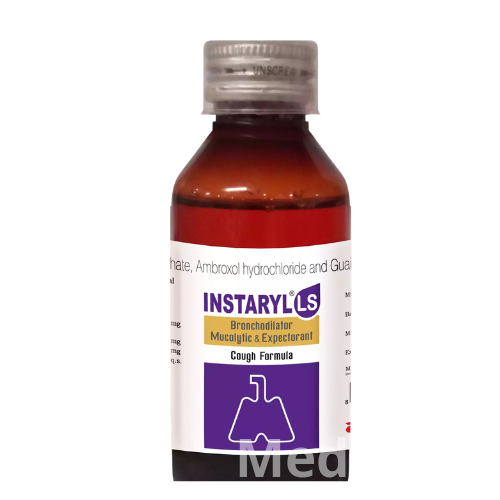 Instaryl-LS Expec is a comprehensive cough syrup formulated to provide effective relief from productive cough associated with various respiratory conditions. It typically combines a bronchodilator, such as Levosalbutamol (Levalbuterol), with an expectorant (e.g., Guaifenesin) and a mucolytic agent (e.g., Ambroxol or Carbocysteine). Levosalbutamol acts as a selective beta-2 adrenergic agonist, relaxing the smooth muscles of the airways, which leads to bronchodilation and easier breathing. The expectorant component works by increasing the volume and reducing the stickiness of respiratory secretions, making it easier to cough up phlegm. Simultaneously, the mucolytic agent breaks down the thick, tenacious mucus, further aiding its clearance from the respiratory tract. This synergistic combination effectively addresses both bronchospasm and mucus congestion, promoting clearer airways and alleviating cough symptoms.
