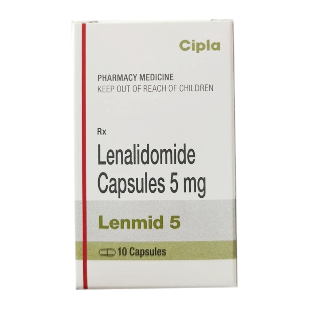 Lenmid 5mg Capsule is an immunomodulatory agent primarily used in the treatment of certain hematological malignancies. It belongs to a class of drugs that work by modulating the immune system and exhibiting anti-angiogenic and anti-neoplastic properties. Its mechanism involves inhibiting the proliferation of certain tumor cells, enhancing natural killer (NK) cell activity, and modulating cytokine production. This leads to a reduction in tumor growth and improved patient outcomes in specific conditions. It is often used in combination with other therapies to achieve optimal therapeutic effects.