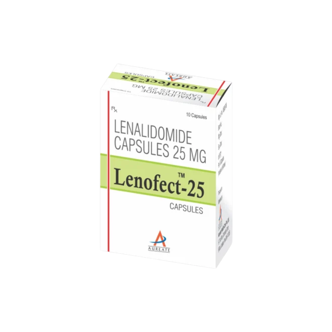 Lenofect 25mg Capsule is an immunomodulatory agent primarily used in the treatment of certain hematological malignancies. It belongs to a class of drugs that work by modulating the immune system and exhibiting anti-angiogenic and anti-neoplastic properties. Its mechanism involves inhibiting the proliferation of certain tumor cells, enhancing natural killer (NK) cell activity, and modulating cytokine production. This leads to a reduction in tumor growth and improved patient outcomes in specific conditions. It is often used in combination with other therapies to achieve optimal therapeutic effects.