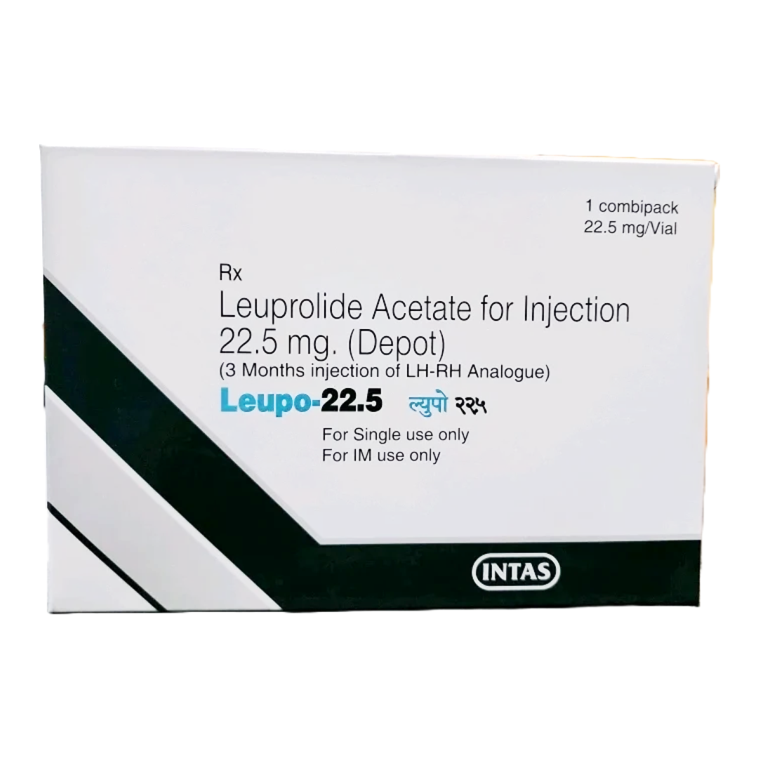 Leupo 22.5mg Injection contains leuprolide, a synthetic gonadotropin-releasing hormone (GnRH) agonist, a class of medications used to modulate the body's hormonal balance. It functions by initially stimulating and subsequently desensitizing the GnRH receptors located in the pituitary gland. This biphasic action ultimately leads to a significant and sustained suppression of gonadotropin secretion, specifically luteinizing hormone (LH) and follicle-stimulating hormone (FSH). Consequently, the production of sex hormones, such as testosterone in males and estrogen in females, is substantially reduced. This profound hormonal suppression makes leuprolide highly effective in managing various hormone-sensitive conditions, including certain types of cancer and gynecological disorders. The specific formulation, such as depot injections, is designed to provide a sustained release of the active ingredient over an extended period, thereby reducing the frequency of administration and improving patient convenience and adherence to treatment regimens.