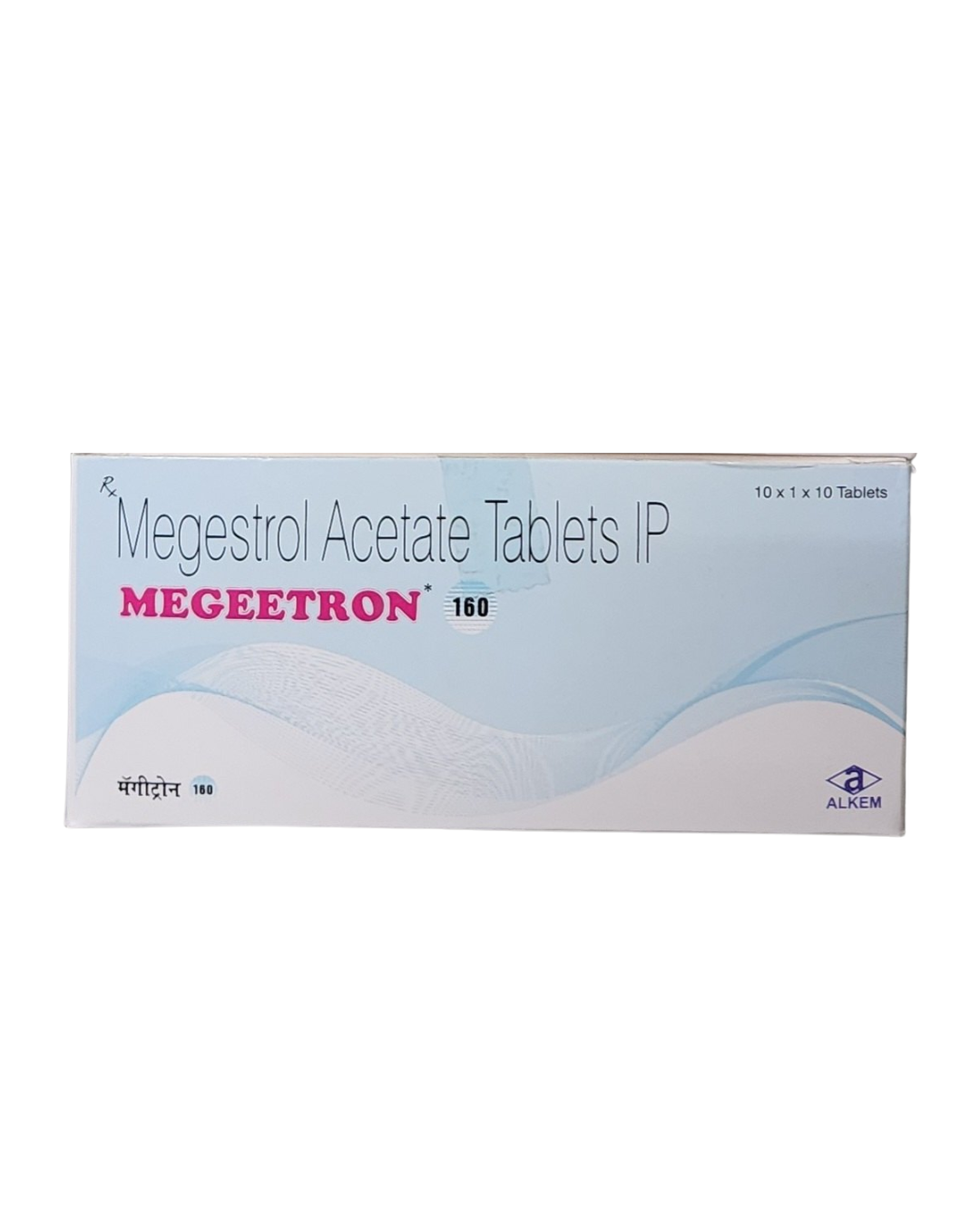 MEGEETRON 160 MG TAB. is a synthetic progestin, primarily used for its appetite-stimulating and antineoplastic properties. As a derivative of progesterone, it exerts its effects by modulating hormonal pathways and influencing metabolic processes. In oncology, it is utilized in the palliative treatment of advanced breast and endometrial cancers, where it can help to control tumor growth and alleviate symptoms. Its mechanism in cancer involves anti-estrogenic effects and direct cytotoxic actions on certain cancer cells.