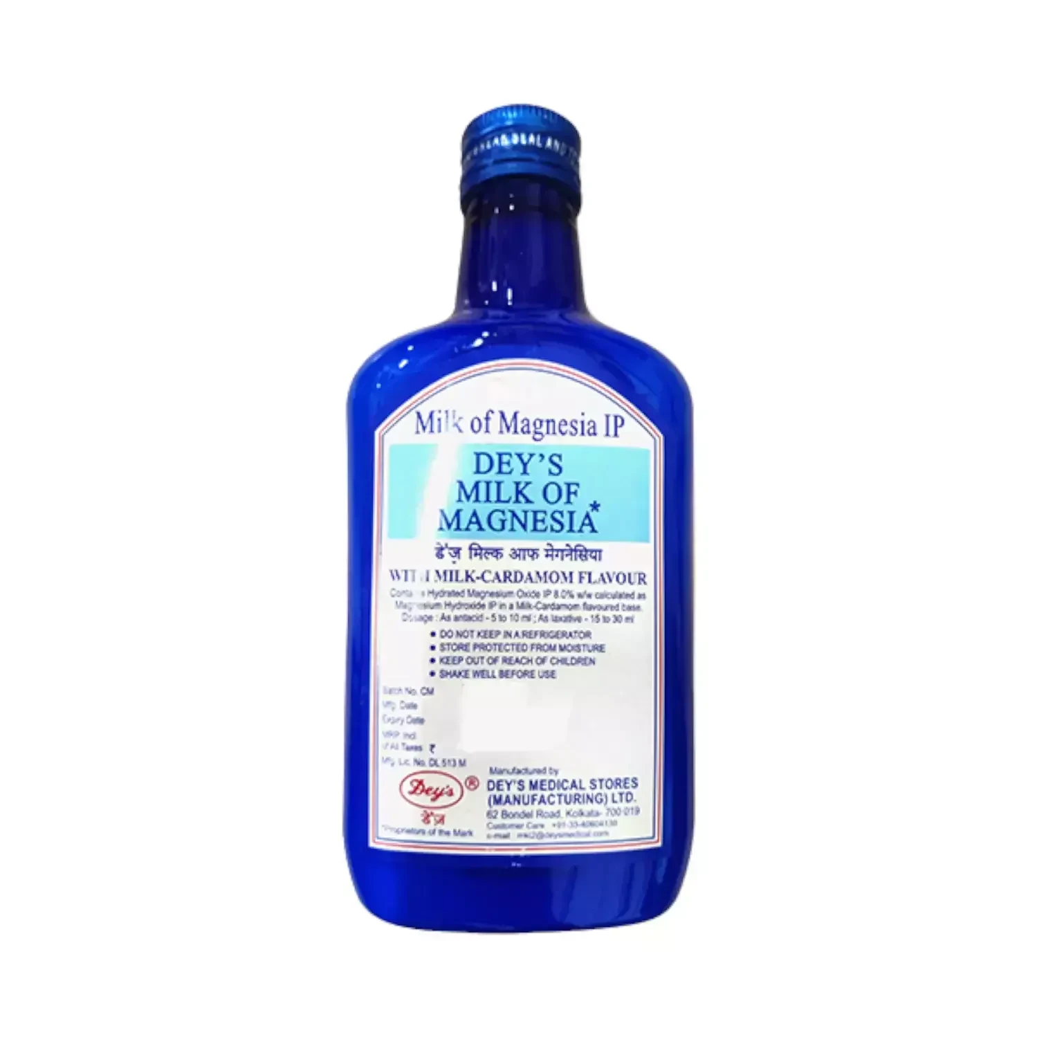 Milk of Magnesia is an osmotic laxative and antacid containing magnesium hydroxide. As an antacid, it works by neutralizing excess stomach acid, providing rapid relief from heartburn, sour stomach, and indigestion. When used as a laxative, it draws water into the intestines, softening the stool and promoting bowel movements. This osmotic action helps to relieve occasional constipation by increasing the water content in the colon, making the stool easier to pass. Its dual action makes it a versatile over-the-counter medication for various gastrointestinal discomforts, offering both immediate acid relief and gentle laxative effects. The liquid formulation ensures quick onset of action and ease of administration, making it a popular choice for temporary relief.