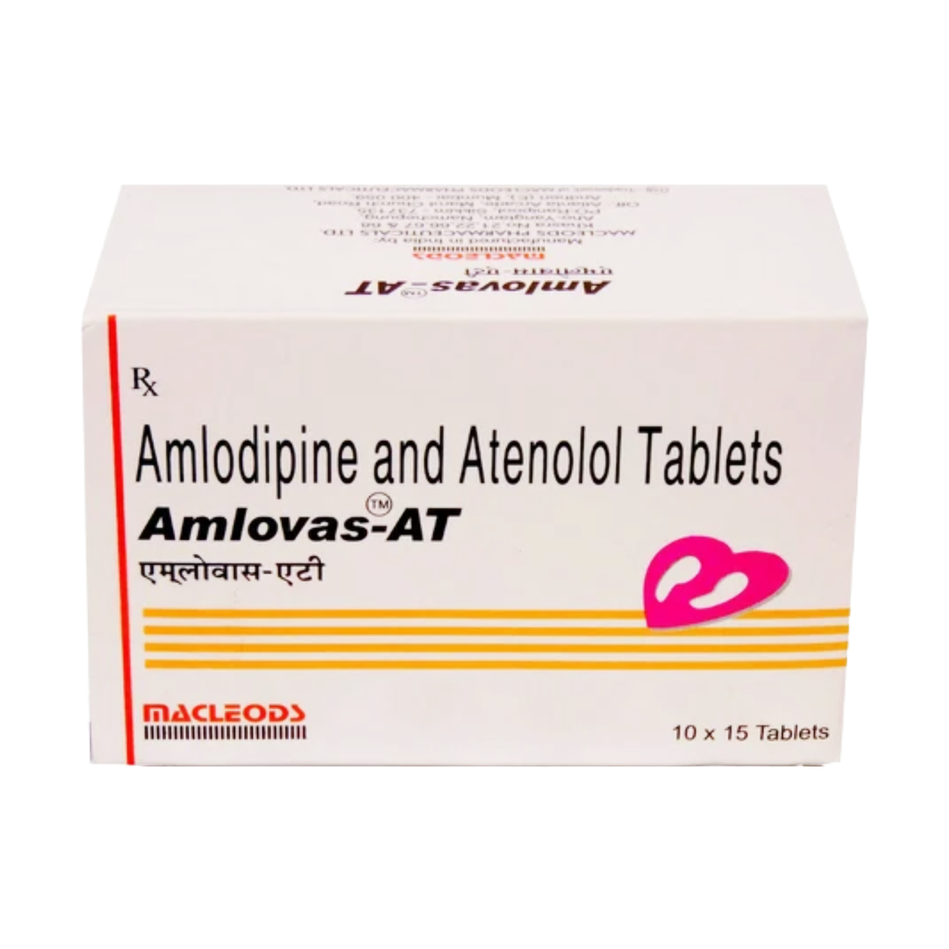 MLOVAS AT is a fixed-dose combination medication comprising Amlodipine and Atenolol, specifically designed for the comprehensive management of essential hypertension and associated cardiovascular conditions. Amlodipine, a dihydropyridine calcium channel blocker, exerts its therapeutic effect by relaxing vascular smooth muscle, leading to significant peripheral vasodilation. This action effectively reduces peripheral vascular resistance and systemic blood pressure, while also improving myocardial oxygen supply. Atenolol, a beta-1 selective adrenergic blocker, acts by reducing heart rate, myocardial contractility, and cardiac output, thereby further lowering blood pressure and decreasing cardiac workload. This synergistic combination targets multiple physiological pathways involved in blood pressure regulation, offering enhanced antihypertensive efficacy and improved cardiovascular protection, making it particularly beneficial for patients who require more than one agent to achieve adequate blood pressure control and manage angina.