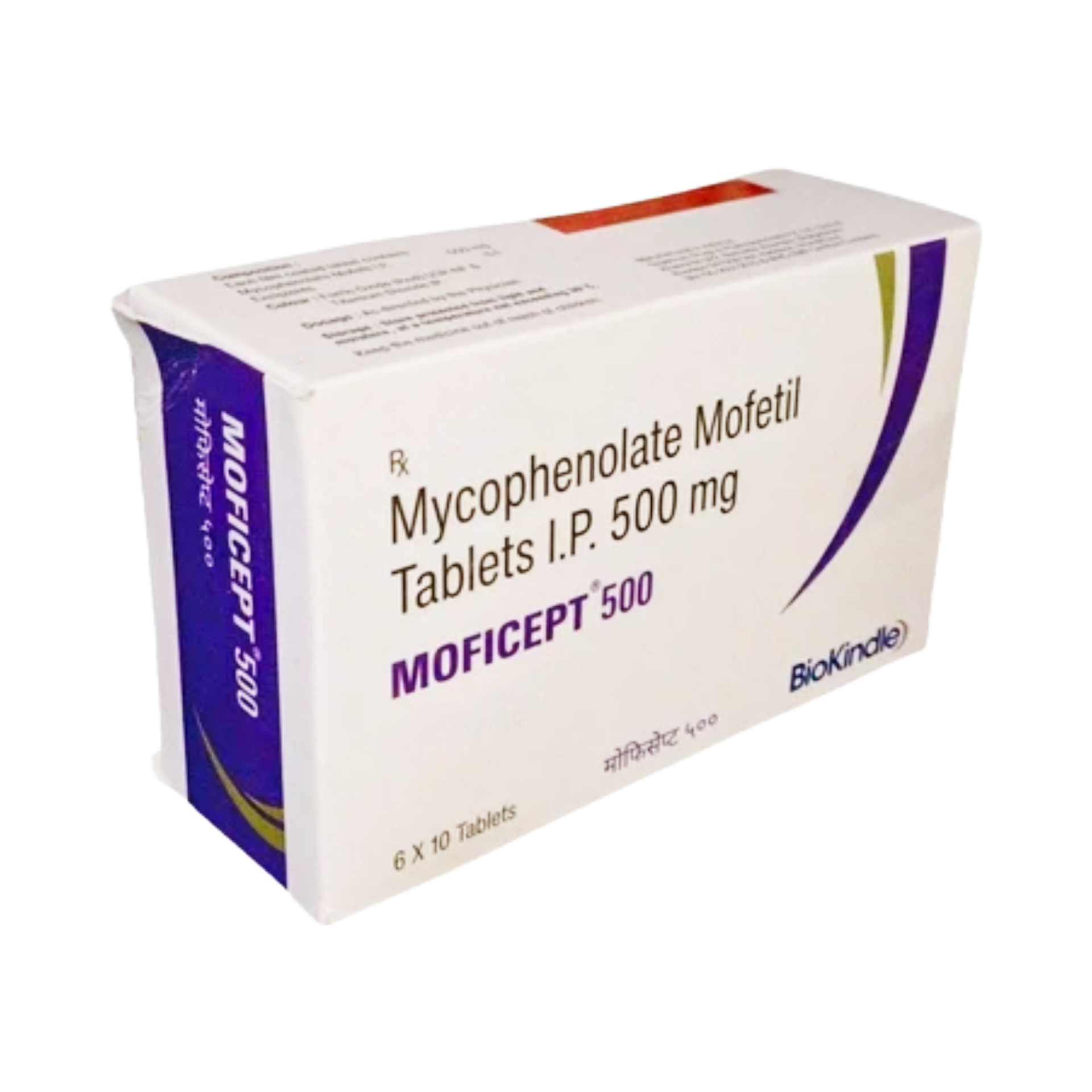 Moficept 500 mg, likely referring to Mycophenolate Mofetil (MMF), is a potent immunosuppressive agent primarily used to prevent organ rejection in patients who have received kidney, heart, or liver transplants. It functions by selectively inhibiting inosine monophosphate dehydrogenase (IMPDH), an enzyme critical for the de novo synthesis of guanosine nucleotides. This mechanism specifically targets and inhibits the proliferation of T and B lymphocytes, which are key components of the immune system responsible for recognizing and attacking transplanted organs. By suppressing the immune response, MMF helps to ensure the long-term survival and function of the transplanted organ.