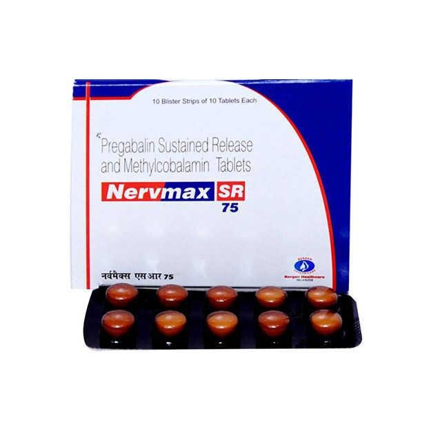 NERVMAX SR 75 is a sustained-release formulation of a gabapentinoid medication, such as Pregabalin, primarily indicated for the management of neuropathic pain, fibromyalgia, and generalized anxiety disorder. This class of medication works by binding to the alpha-2-delta subunit of voltage-gated calcium channels in the central nervous system. This action reduces the release of several excitatory neurotransmitters, thereby decreasing abnormal nerve activity responsible for pain and anxiety.
