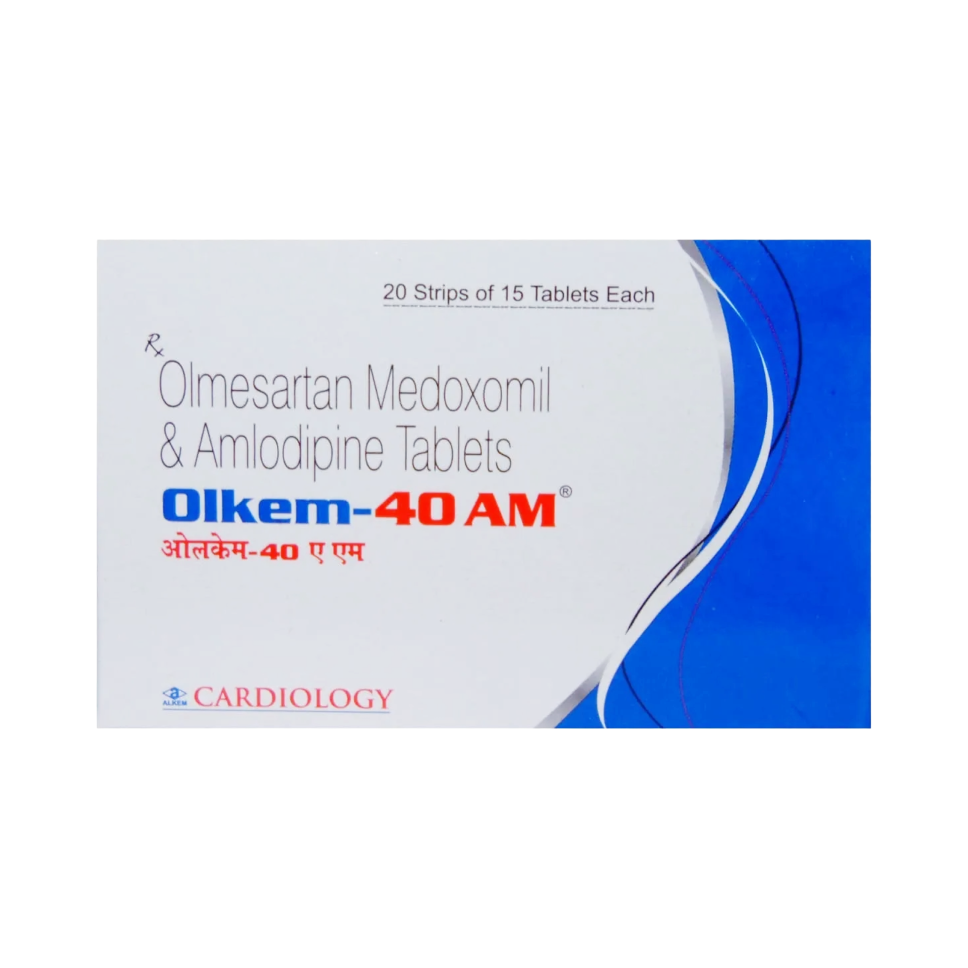 This medication is a fixed-dose combination therapy indicated for the management of essential hypertension, particularly in patients whose blood pressure is not adequately controlled with monotherapy. It combines Olmesartan 40mg, an angiotensin II receptor blocker (ARB), with Amlodipine, a dihydropyridine calcium channel blocker (CCB). Olmesartan works by selectively blocking the binding of angiotensin II to the AT1 receptor, leading to vasodilation and reduced aldosterone secretion, which helps lower blood pressure. Amlodipine inhibits the influx of calcium ions into vascular smooth muscle and myocardial cells, resulting in peripheral vasodilation and reduced peripheral vascular resistance. The synergistic action of these two agents provides enhanced and sustained blood pressure control through complementary mechanisms, making it an effective option for achieving target blood pressure and reducing cardiovascular risk, especially in patients who may also benefit from the anti-anginal effects of amlodipine.