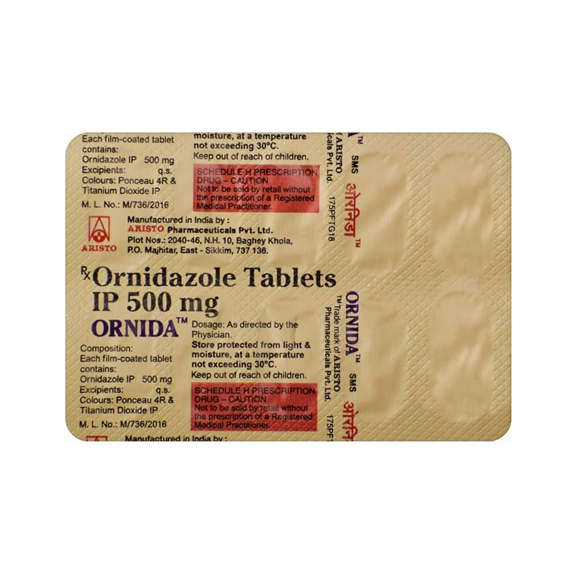 Take ORNIDA 500MG TAB orally, preferably after meals, as directed by your physician. Complete the full course of treatment to ensure complete eradication of the infection.