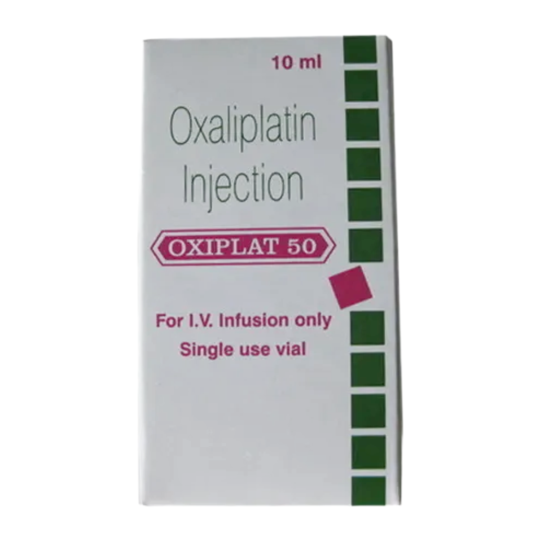 Oxiplat 50mg Injection contains Oxaliplatin, a platinum-based antineoplastic agent primarily used in the treatment of various cancers, particularly colorectal cancer. It functions by forming DNA adducts, which interfere with DNA replication and transcription, ultimately leading to programmed cell death in rapidly dividing cancer cells. This mechanism makes it a potent cytotoxic agent. It is typically administered intravenously, often in combination with other chemotherapeutic agents like fluoropyrimidines (e.g., 5-fluorouracil and leucovorin) as part of established regimens such as FOLFOX. Its efficacy lies in its ability to disrupt the cellular machinery essential for cancer cell proliferation and survival.