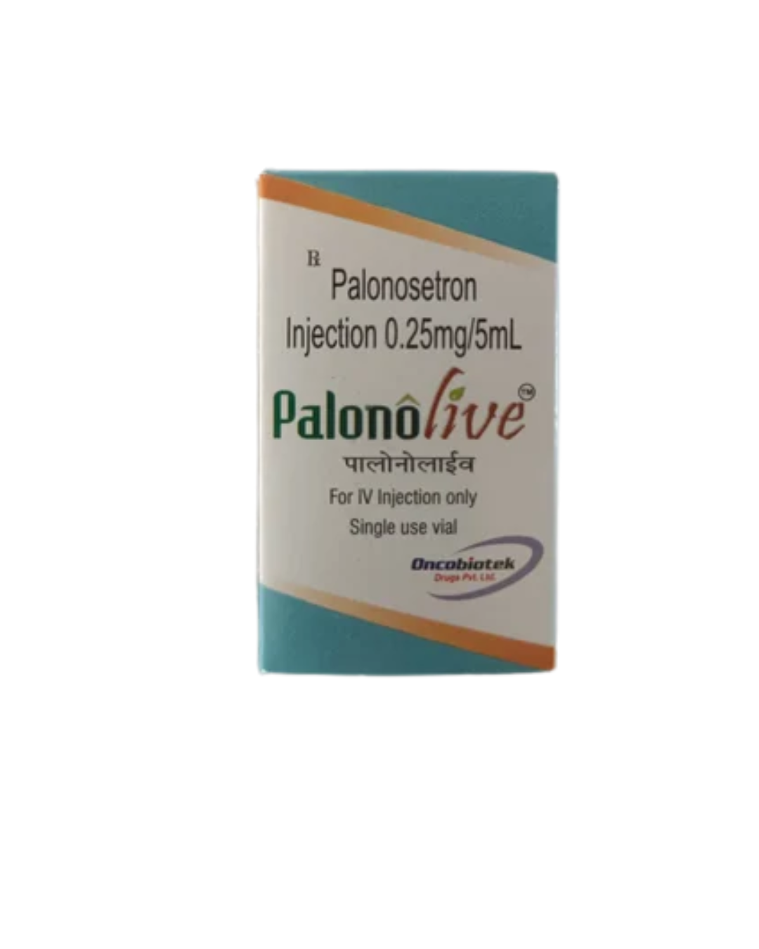 PALONOLIVE 0.25 mg Injection contains Palonosetron, a medication used to prevent nausea and vomiting caused by chemotherapy, radiation therapy, or surgery. It belongs to a class of drugs called 5-HT3 receptor antagonists, which work by blocking the action of serotonin, a chemical in the body that can trigger nausea and vomiting.