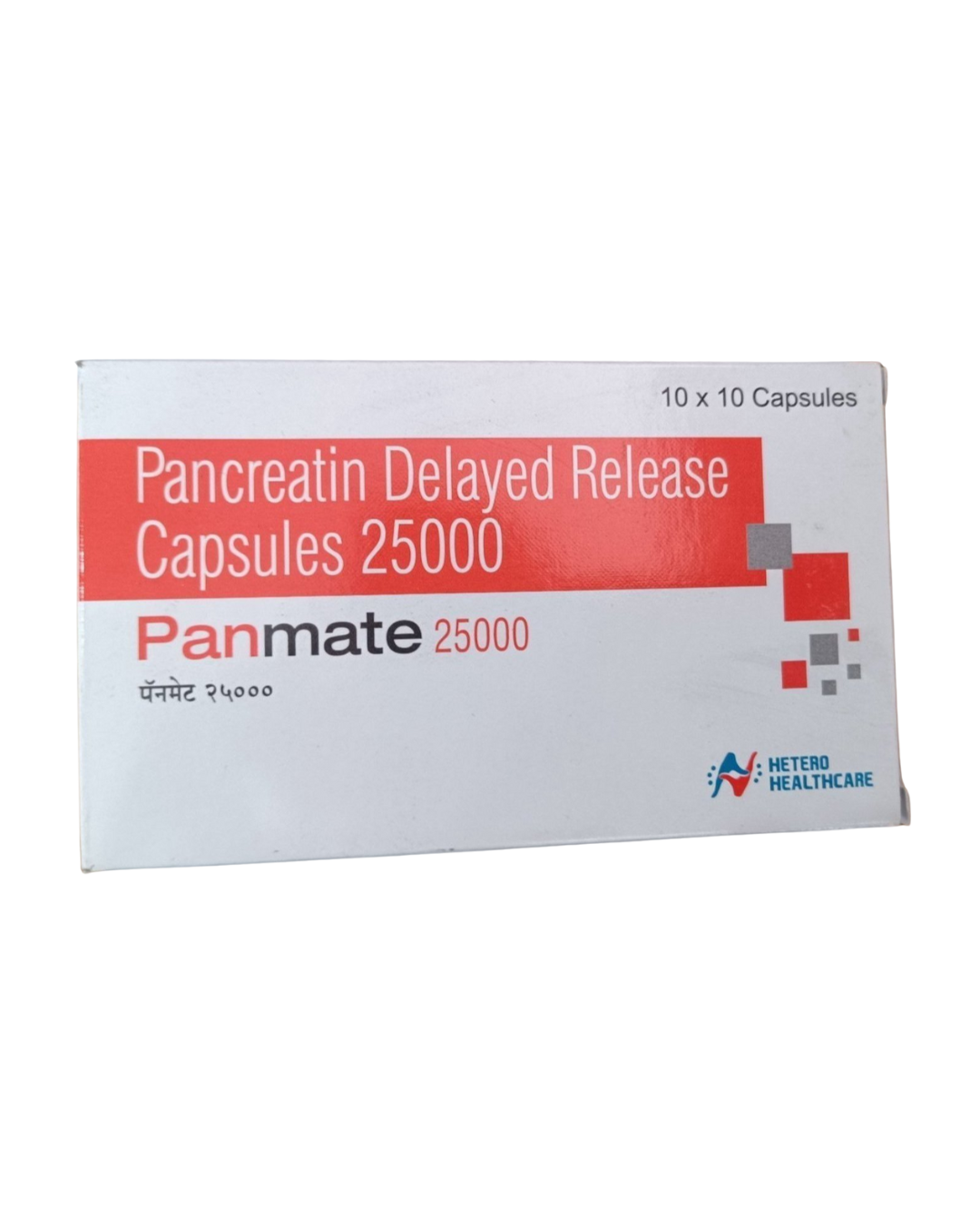 PANMATE 10000MG CAPSULE contains Pancreatin, a gastrointestinal agent used to treat exocrine pancreatic enzyme insufficiency (deficient pancreatic enzymes). It is also indicated for pancreatitis, flatulence, cystic fibrosis, moderate indigestion in diabetes, irritable bowel syndrome, digestive aid, and after pancreas removal.