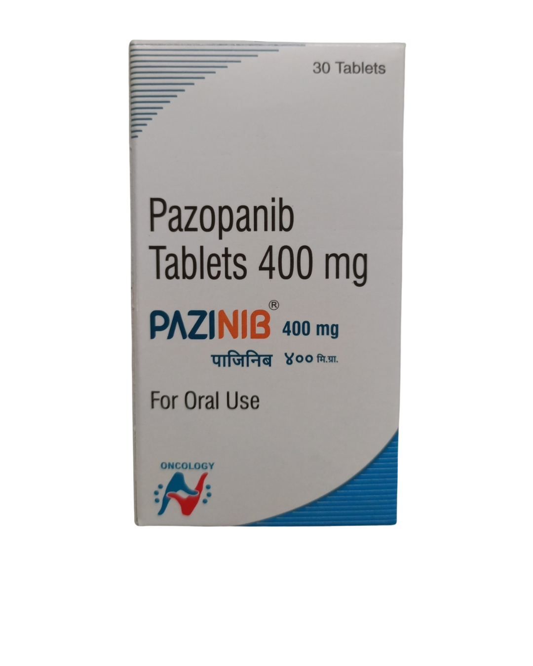 Pazinib 400mg Tablet is a protein kinase inhibitor used in the treatment of kidney cancer and soft tissue sarcoma.