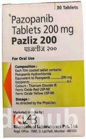 Pazopanib is a multi-targeted receptor tyrosine kinase (RTK) inhibitor that blocks the activity of several key enzymes involved in cancer cell growth and blood vessel formation (angiogenesis). Specifically, it targets vascular endothelial growth factor receptor (VEGFR)-1, -2, and -3, platelet-derived growth factor receptor (PDGFR)-α and -β, and c-Kit. By inhibiting these pathways, pazopanib helps to slow or stop the proliferation of cancer cells and reduce the blood supply to tumors, thereby impeding tumor growth and metastasis. It is primarily used in the treatment of advanced renal cell carcinoma (RCC) and advanced soft tissue sarcoma (STS) in patients who have received prior chemotherapy.