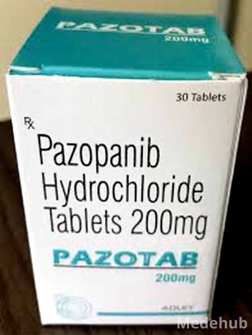 Pazopanib is an oral multi-targeted receptor tyrosine kinase inhibitor (TKI) that selectively inhibits the activity of several key kinases involved in tumor growth and angiogenesis. These include vascular endothelial growth factor receptors (VEGFR-1, -2, and -3), platelet-derived growth factor receptors (PDGFR-α and -β), and c-Kit. By blocking these pathways, pazopanib effectively inhibits tumor angiogenesis, leading to reduced blood supply to the tumor, and directly suppresses tumor cell proliferation and survival. This dual mechanism of action makes it a potent antineoplastic agent. It is particularly effective in treating advanced renal cell carcinoma (RCC) and advanced soft tissue sarcoma (STS) in patients who have previously received chemotherapy, offering a targeted approach to cancer therapy by disrupting critical signaling cascades essential for cancer progression.