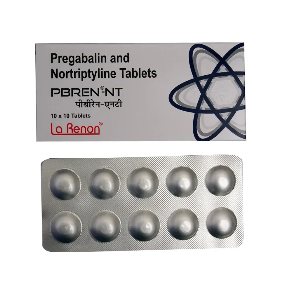 This medication is a combination therapy primarily used for the management of neuropathic pain and certain anxiety disorders. It typically combines Pregabalin, an anticonvulsant and anxiolytic, with Nortriptyline, a tricyclic antidepressant. Pregabalin works by binding to the alpha-2-delta subunit of voltage-gated calcium channels in the central nervous system, which reduces the release of several neurotransmitters, thereby decreasing nerve hyperexcitability and pain signals. Nortriptyline, on the other hand, increases the levels of norepinephrine and serotonin in the brain, which helps to modulate pain pathways and improve mood.