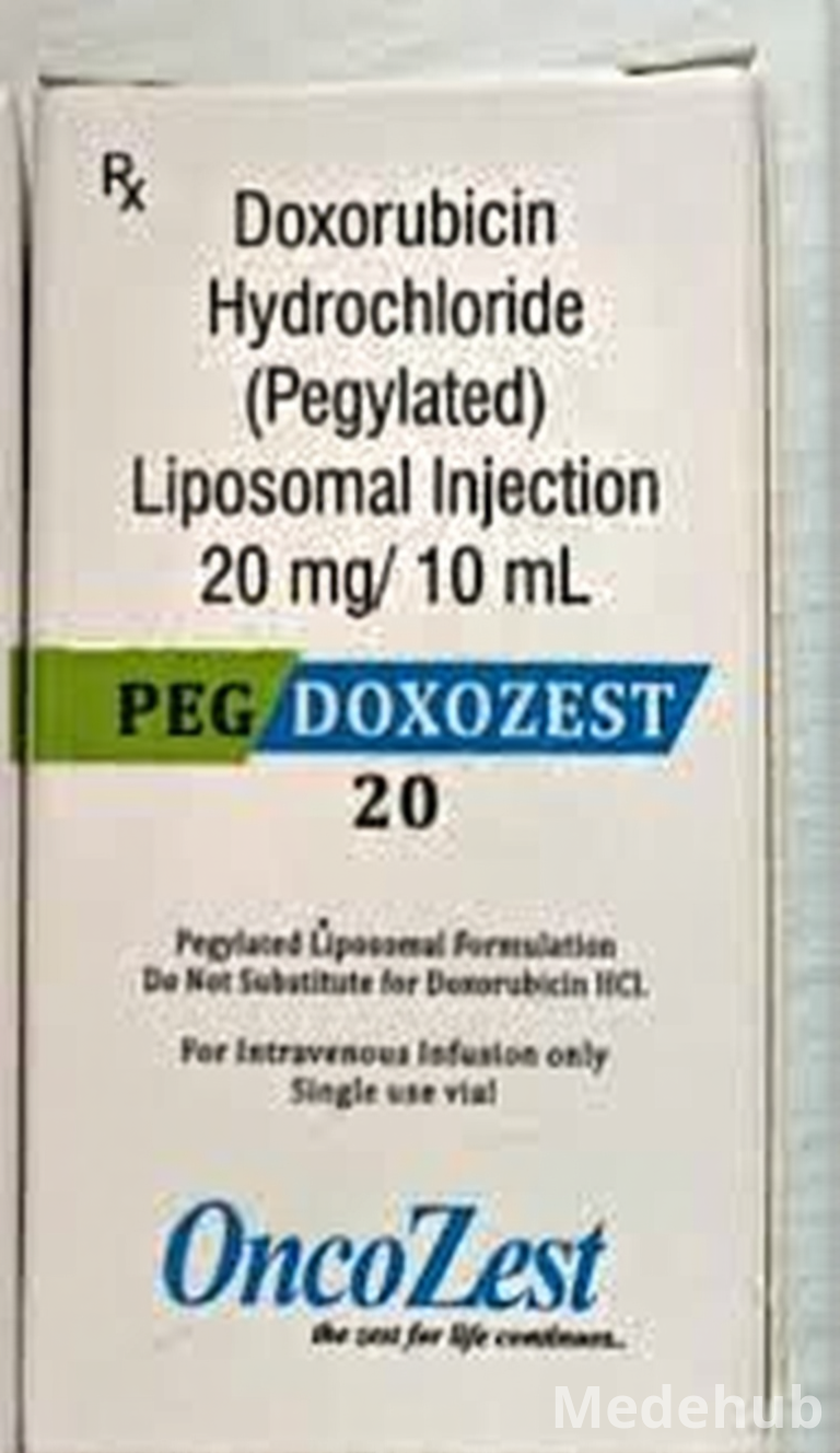 Pegylated liposomal doxorubicin is an anthracycline topoisomerase inhibitor encapsulated in stealth liposomes, which are coated with polyethylene glycol (PEG). This innovative formulation significantly alters the pharmacokinetic profile of doxorubicin, allowing for prolonged circulation time and enhanced accumulation in tumor tissues through the enhanced permeability and retention (EPR) effect, while reducing exposure to healthy tissues, particularly the heart. Doxorubicin itself exerts its cytotoxic effects by intercalating into DNA, inhibiting topoisomerase II, and generating free radicals, leading to DNA damage and apoptosis in rapidly dividing cancer cells. The liposomal encapsulation helps to mitigate common dose-limiting toxicities such as cardiotoxicity and myelosuppression, making it a valuable option for treating various solid tumors and hematologic malignancies, especially in patients where conventional doxorubicin might be too toxic.