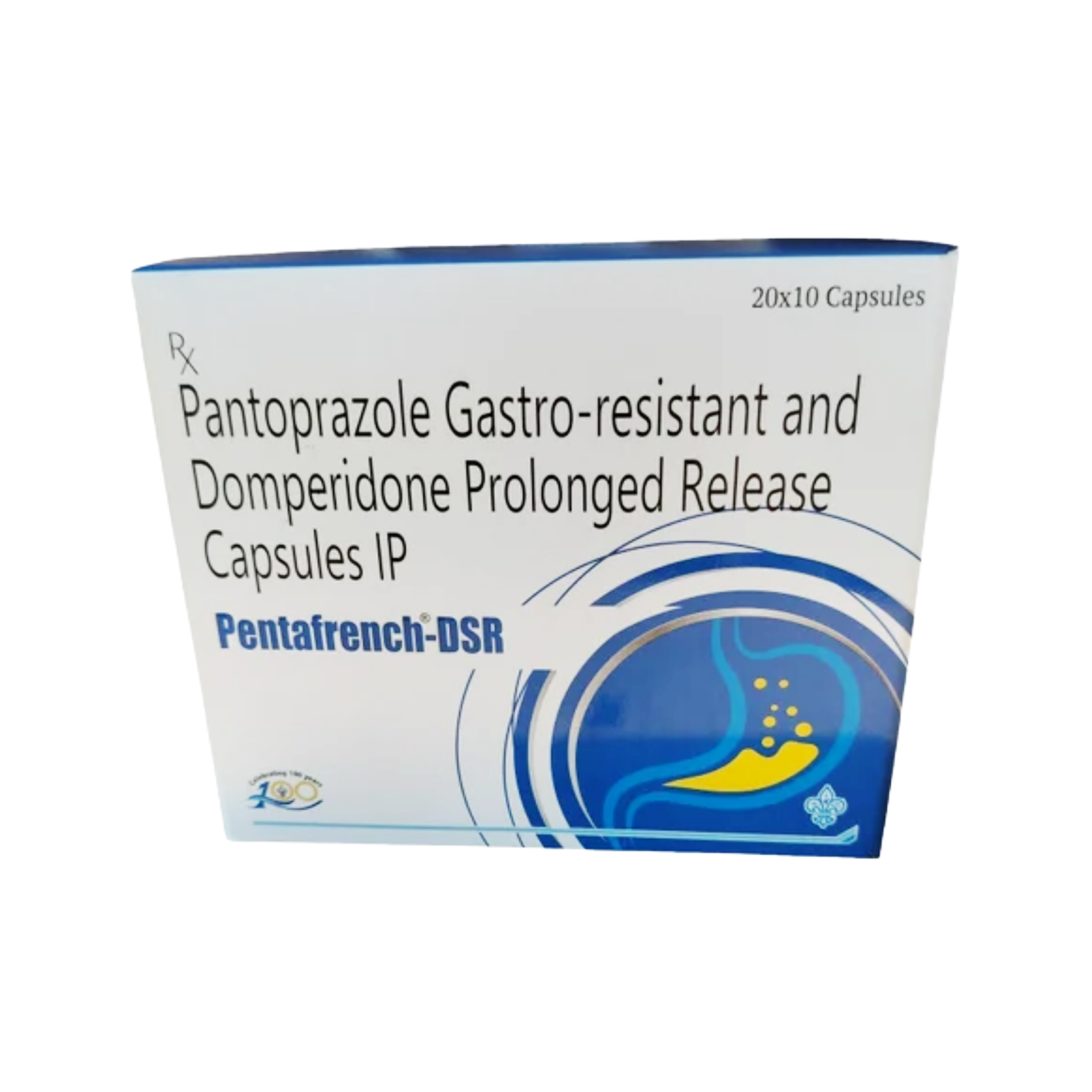 PENTAFRENCH DSR is a pharmaceutical combination designed for the effective management of acid-related disorders, particularly gastroesophageal reflux disease (GERD) and dyspepsia. It comprises Pantoprazole, a potent proton pump inhibitor (PPI), and Domperidone in a sustained-release (SR) formulation. Pantoprazole works by irreversibly binding to the proton pumps in the parietal cells of the stomach, thereby inhibiting the final step of acid secretion. This leads to a significant and prolonged reduction in stomach acid production, facilitating the healing of esophageal erosions and ulcers. Domperidone, a prokinetic agent, acts by blocking peripheral dopamine receptors, which enhances gastrointestinal motility. This action helps to accelerate gastric emptying, reduce reflux episodes, and alleviate symptoms such as nausea, vomiting, and bloating. The sustained-release mechanism ensures a consistent therapeutic effect, providing extended relief from symptoms and improving patient compliance for chronic conditions.