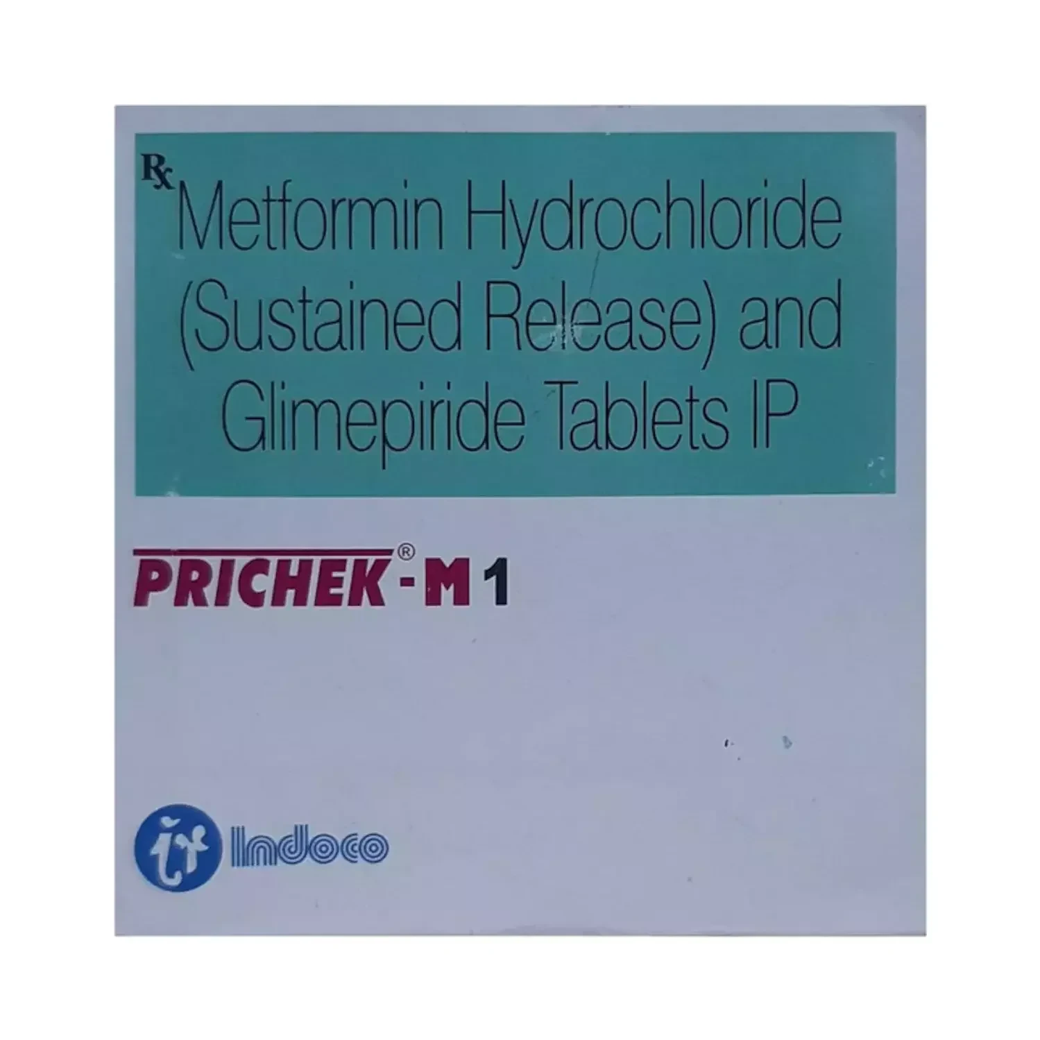 PRICHAK M-1 contains Metformin, an oral antidiabetic medication belonging to the biguanide class, primarily used for the management of type 2 diabetes mellitus. Metformin works by several mechanisms to lower blood glucose levels. Its main action is to reduce glucose production by the liver, a process known as hepatic gluconeogenesis. Additionally, it improves insulin sensitivity in peripheral tissues, such as muscle and fat cells, allowing them to absorb and utilize glucose more effectively from the bloodstream. Metformin also decreases the absorption of glucose from the gastrointestinal tract.