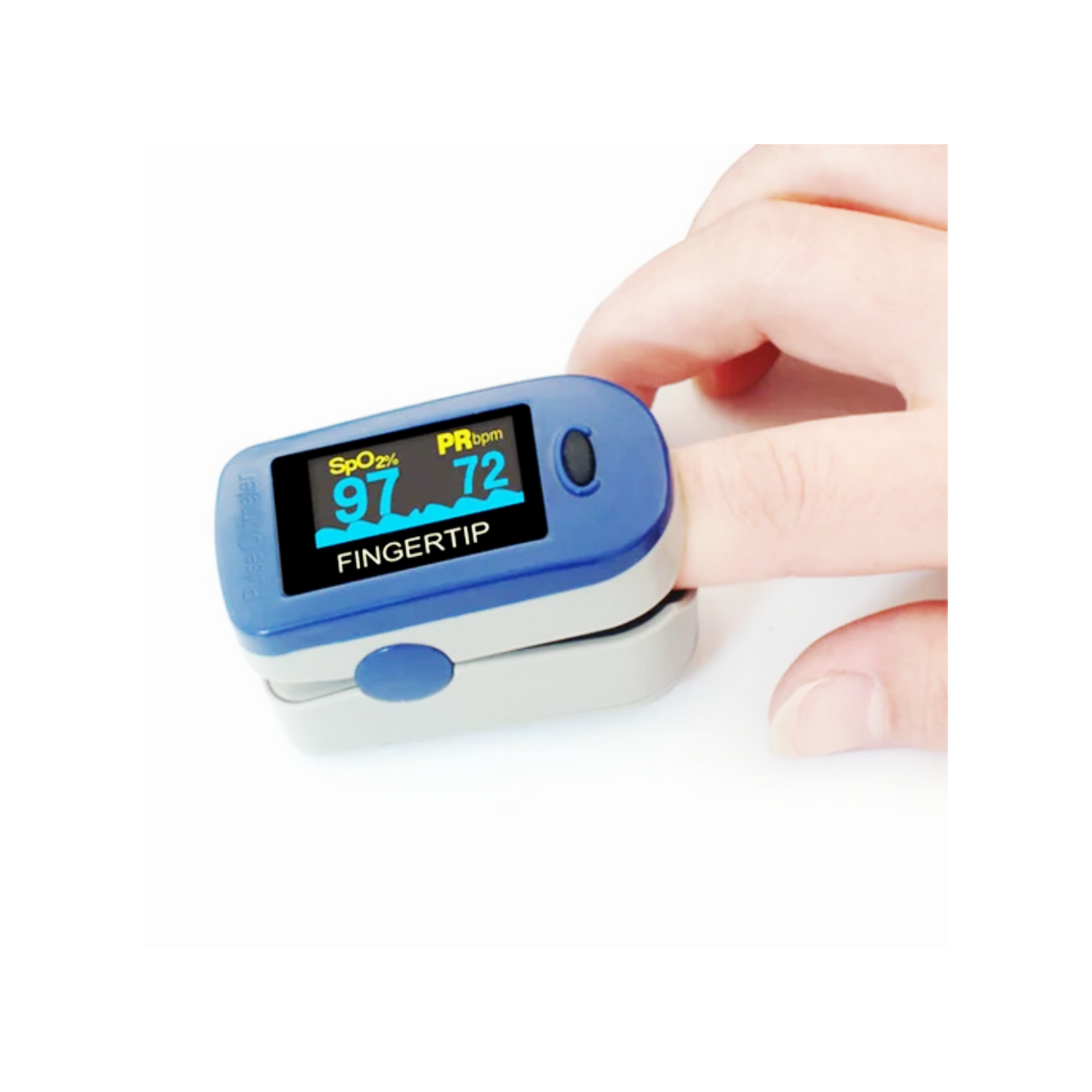 A pulse oximeter is a non-invasive medical device used to monitor oxygen saturation (SpO2) levels in the blood and measure pulse rate. It works by emitting light at two different wavelengths through a part of the body, typically a fingertip or earlobe, and then detecting the amount of light absorbed by oxygenated and deoxygenated hemoglobin. The device calculates the percentage of hemoglobin carrying oxygen, providing a quick and accurate assessment of a person's respiratory and circulatory function. Pulse oximeters are widely used in hospitals, clinics, and home settings to monitor patients with chronic respiratory conditions like COPD or asthma, during surgery, or for general health screening, offering vital information about oxygen delivery to tissues and helping to detect hypoxemia early.