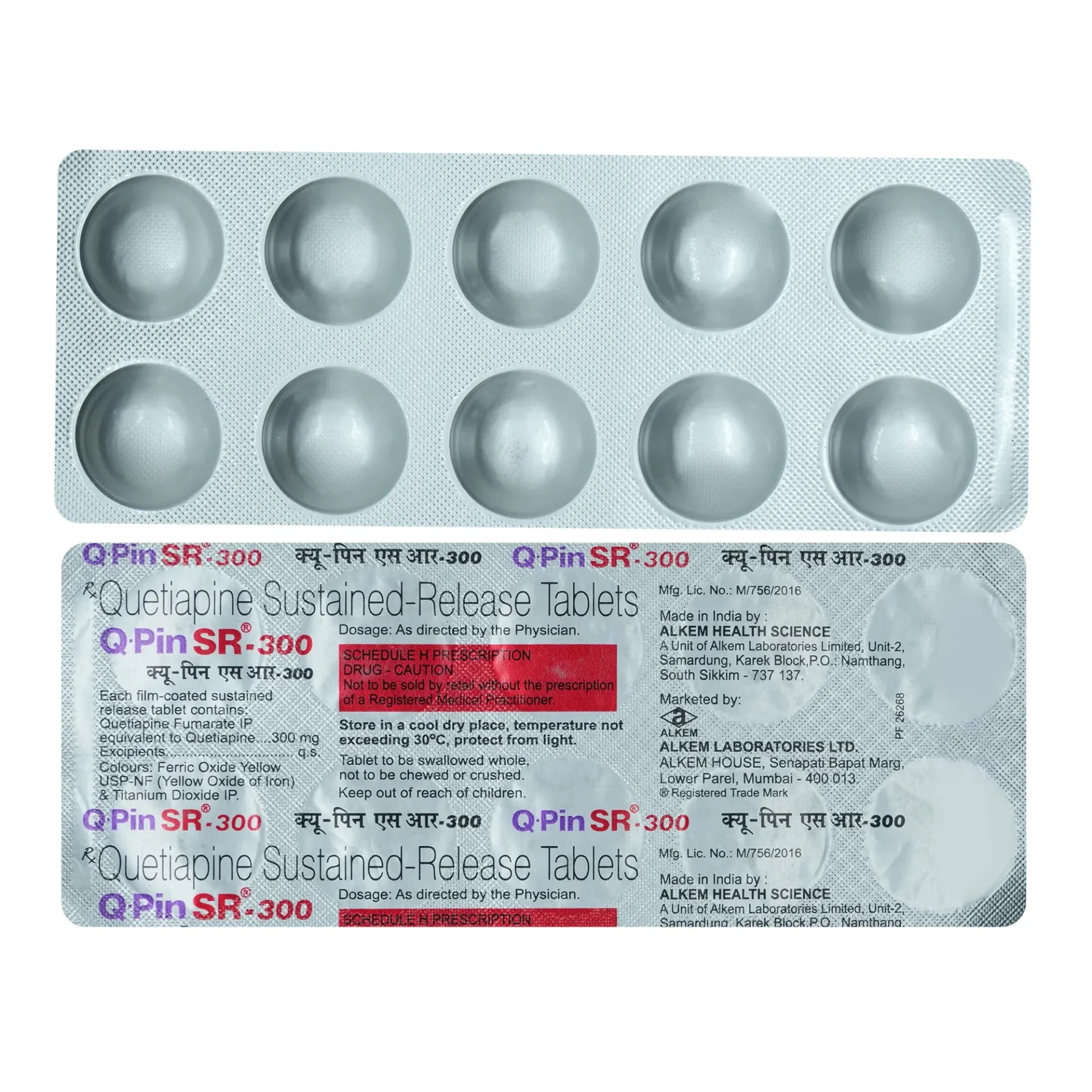 Q-PIN SR 300 is a sustained-release formulation of Quetiapine, an atypical antipsychotic medication. It is primarily used in the treatment of schizophrenia, bipolar disorder (manic, depressive, and mixed episodes), and as an adjunct to antidepressants for major depressive disorder. Quetiapine works by modulating the activity of several neurotransmitters in the brain, including dopamine and serotonin, which are implicated in mood and thought processes. The sustained-release formulation allows for once-daily dosing, providing consistent therapeutic levels and improving patient adherence.