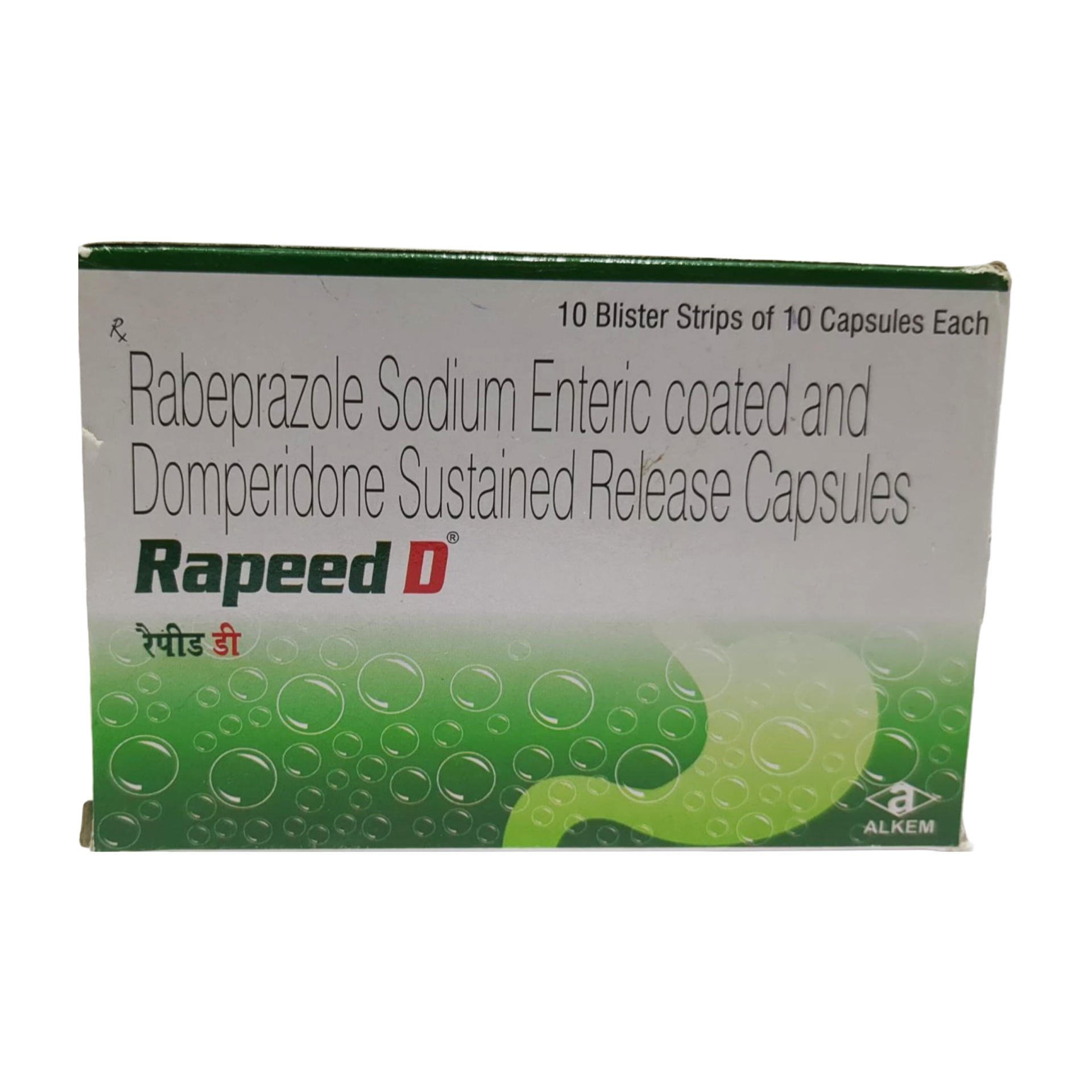 This combination medication contains Rabeprazole, a proton pump inhibitor (PPI), and Domperidone, a prokinetic agent. Rabeprazole works by irreversibly blocking the proton pump in the stomach's parietal cells, significantly reducing the amount of acid produced in the stomach. This provides effective relief from acid-related symptoms and allows the esophagus to heal from erosions caused by reflux. Domperidone enhances the movement of food through the stomach and intestines by blocking dopamine receptors, preventing reflux and reducing feelings of fullness, nausea, and vomiting.
