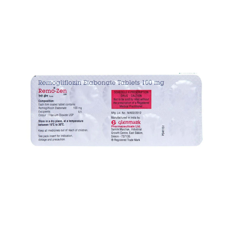This medication contains Remogliflozin, a selective sodium-glucose co-transporter 2 (SGLT2) inhibitor, designed for the management of type 2 diabetes mellitus. Remogliflozin works by targeting the SGLT2 proteins in the kidneys, which are responsible for reabsorbing glucose back into the bloodstream. By inhibiting these proteins, Remogliflozin promotes the excretion of excess glucose through the urine, thereby lowering blood glucose levels. This mechanism of action is independent of insulin, making it effective even in patients with impaired insulin secretion. In addition to its glucose-lowering effects, SGLT2 inhibitors like Remogliflozin have been associated with other benefits, including modest weight reduction, blood pressure lowering, and potential cardiovascular and renal protective effects. It is used as an adjunct to diet and exercise to improve glycemic control in adults with type 2 diabetes.