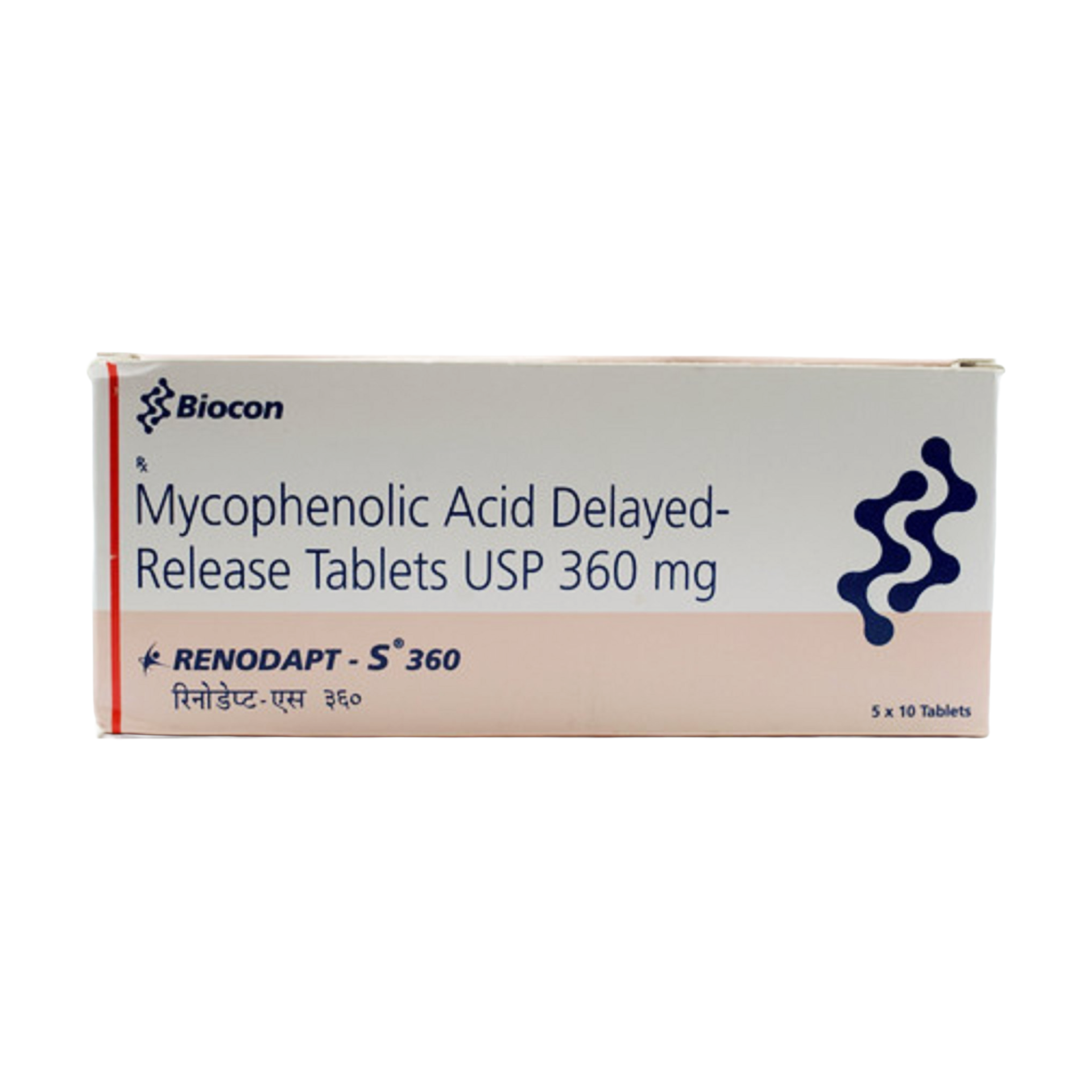 The enteric-coated formulation helps to reduce gastrointestinal side effects often associated with mycophenolate mofetil. RENODAPT S 360 is typically used in combination with other immunosuppressants, such as calcineurin inhibitors and corticosteroids, to provide comprehensive immune suppression and minimize the risk of graft rejection. Regular monitoring of blood counts and kidney function is important during treatment to manage potential side effects and ensure optimal therapeutic levels.