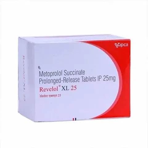REVELOL XL 25 mg tablets contain Metoprolol Succinate, an extended-release formulation of a selective beta-1 adrenergic receptor blocker. This medication is primarily used for the long-term management of hypertension, angina pectoris, and stable symptomatic heart failure of ischemic or non-ischemic origin. Metoprolol works by selectively blocking beta-1 receptors in the heart, which leads to a reduction in heart rate, myocardial contractility, and cardiac output. This action effectively lowers blood pressure, decreases the heart's oxygen demand, and improves cardiac function in patients with heart failure.
