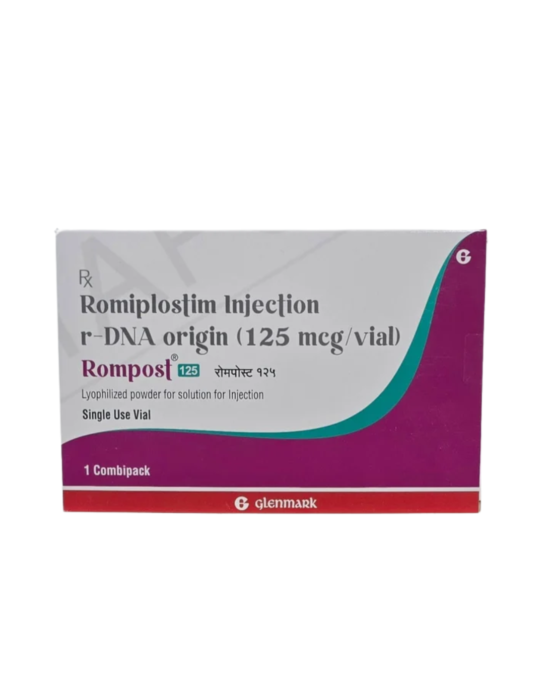 Rompost 125mg Injection is a platelet-stimulating agent that contains Romiplostim, used in the treatment of immune primary thrombocytopenia (ITP). ITP is a condition where the immune system mistakenly targets and destroys the body's own platelets, resulting in a low platelet count. This medication is typically prescribed to adults and children aged 18 and older when other treatments—such as corticosteroids, immunoglobulins, or splenectomy (surgical removal of the spleen)—have failed to increase platelet levels effectively.