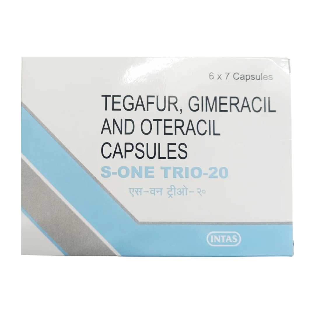 S-One Trio 20mg Capsule is a combination medication formulated to provide comprehensive management for specific chronic conditions. This therapy integrates three distinct active ingredients, each targeting different physiological pathways to achieve a synergistic therapeutic effect. The multi-pronged approach aims to optimize disease control, reduce the risk of complications, and improve overall patient outcomes by addressing multiple facets of the underlying pathology simultaneously.