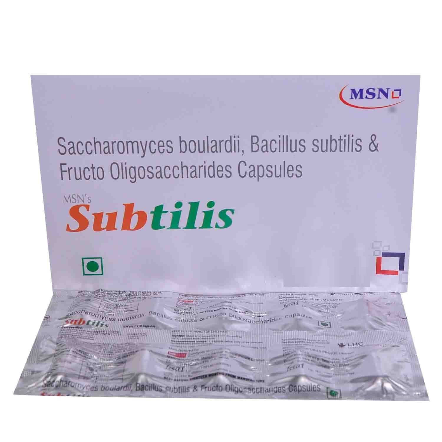 SUBTILIS TAB is a probiotic supplement containing beneficial bacteria, likely Bacillus subtilis, designed to support and restore the natural balance of gut flora. Probiotics are live microorganisms that, when administered in adequate amounts, confer a health benefit on the host. Bacillus subtilis is a spore-forming bacterium known for its resilience, allowing it to survive the harsh acidic environment of the stomach and reach the intestines intact. Once in the gut, it helps to inhibit the growth of harmful pathogens, produce beneficial enzymes, and modulate the immune system. This contributes to improved digestion, enhanced nutrient absorption, and overall gastrointestinal health. It is often used to prevent or treat antibiotic-associated diarrhea, irritable bowel syndrome (IBS) symptoms, and other digestive disturbances by re-establishing a healthy microbial ecosystem in the gut.