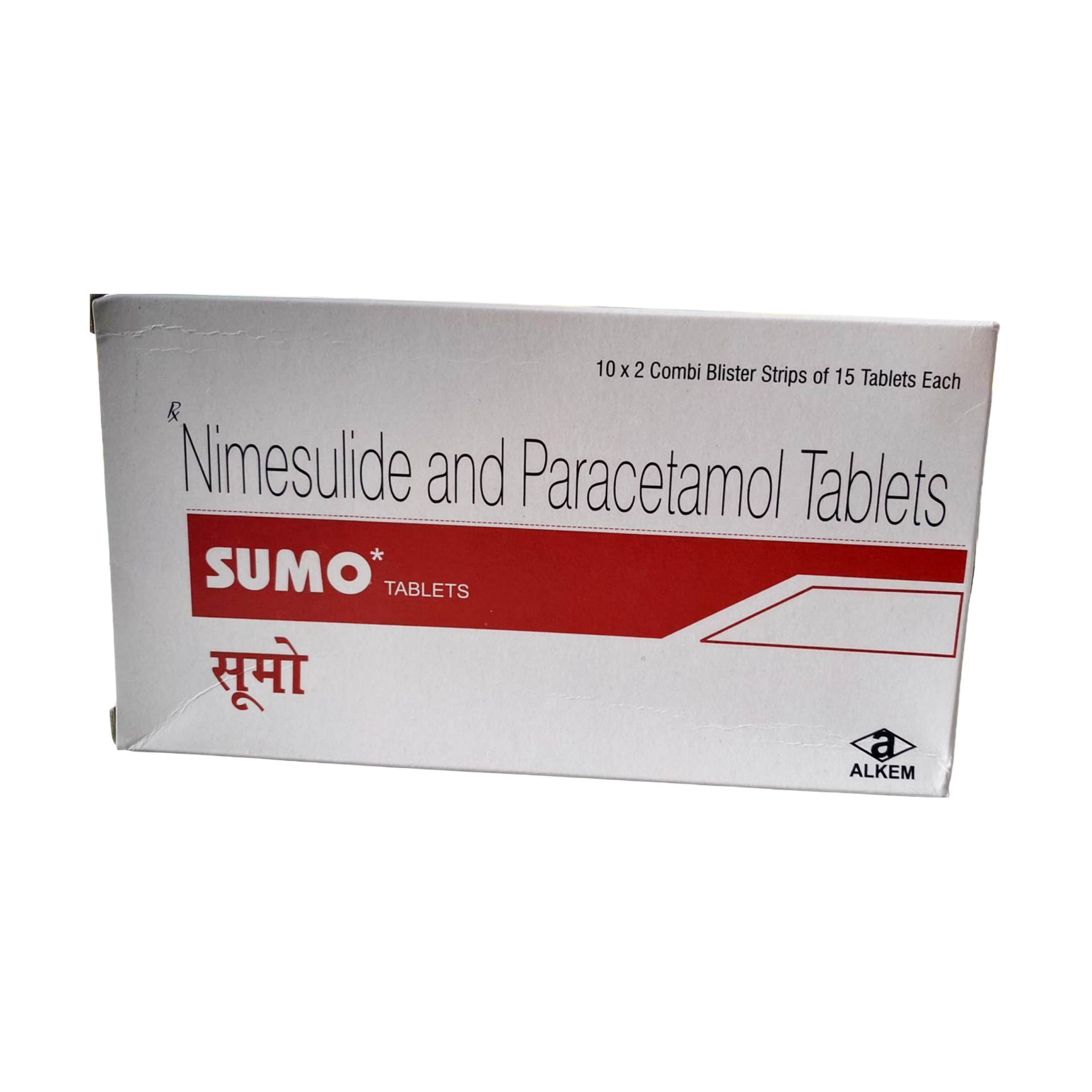 SUMO TAB, containing Nimesulide, is a non-steroidal anti-inflammatory drug (NSAID) with analgesic and antipyretic properties. It primarily acts as a selective inhibitor of cyclooxygenase-2 (COX-2), an enzyme responsible for the synthesis of prostaglandins involved in pain, inflammation, and fever. By selectively targeting COX-2, Nimesulide aims to reduce inflammatory responses with a potentially lower risk of gastrointestinal side effects compared to non-selective NSAIDs, although this benefit is debated. It is widely used for the symptomatic treatment of acute pain, osteoarthritis, and primary dysmenorrhea. Its rapid onset of action and effective pain relief make it a popular choice for various inflammatory and painful conditions. However, its use is restricted in some countries due to concerns regarding liver toxicity.