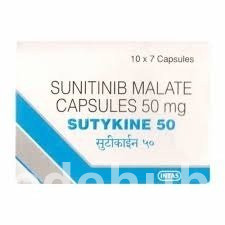 Sutykine 50mg Capsule is an oral multi-targeted receptor tyrosine kinase inhibitor (TKI) indicated for the treatment of various advanced cancers. It functions by blocking multiple receptor tyrosine kinases, including vascular endothelial growth factor receptors (VEGFRs), platelet-derived growth factor receptors (PDGFRs), and KIT, which are crucial for tumor angiogenesis, cell proliferation, and survival. By inhibiting these pathways, Sutykine effectively impedes tumor growth, metastasis, and the development of new blood vessels that supply tumors.