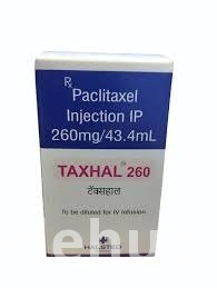Taxhal 260mg Injection is a cytotoxic chemotherapy agent belonging to the taxane class, administered intravenously for the treatment of various cancers. Its mechanism of action involves binding to tubulin, a protein component of microtubules, thereby promoting microtubule assembly and inhibiting their depolymerization. This stabilization of microtubules disrupts the dynamic equilibrium necessary for normal cellular processes, particularly cell division. As a result, cancer cells are arrested in the G2/M phase of the cell cycle, leading to inhibition of proliferation and induction of apoptosis. This formulation is a key component in many cancer treatment protocols.