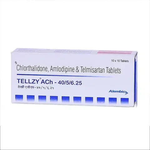 This medication is a potent triple combination therapy for essential hypertension, comprising Telmisartan, an angiotensin II receptor blocker (ARB), Amlodipine, a dihydropyridine calcium channel blocker, and Hydrochlorothiazide, a thiazide diuretic. Telmisartan works by blocking the effects of angiotensin II, leading to vasodilation and a decrease in blood pressure. Amlodipine further enhances this effect by relaxing blood vessels, improving blood flow and reducing cardiac workload. Hydrochlorothiazide contributes by increasing the excretion of sodium and water from the body, which reduces blood volume and consequently lowers blood pressure. This multi-faceted approach provides comprehensive and synergistic blood pressure control, making it highly effective for patients with moderate to severe hypertension or those whose blood pressure is not adequately managed by dual therapy. The combination aims to achieve optimal blood pressure targets, thereby significantly reducing the risk of major cardiovascular and cerebrovascular events.