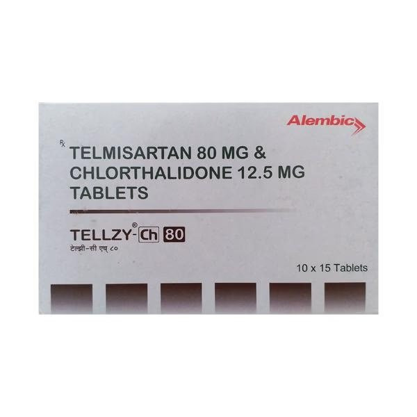 TELLZY CH 80 combines Telmisartan, an angiotensin II receptor blocker (ARB), with Chlorthalidone, a long-acting thiazide-like diuretic. Telmisartan works by blocking the action of angiotensin II, leading to relaxation of blood vessels and a decrease in blood pressure. Chlorthalidone enhances the excretion of sodium and water by the kidneys, which further reduces blood volume and blood pressure. This combination is particularly effective for patients whose blood pressure is not adequately controlled by monotherapy with either agent. The synergistic action of these two drugs provides a more potent and sustained antihypertensive effect, helping to achieve target blood pressure levels and reduce the risk of cardiovascular events in patients with essential hypertension.