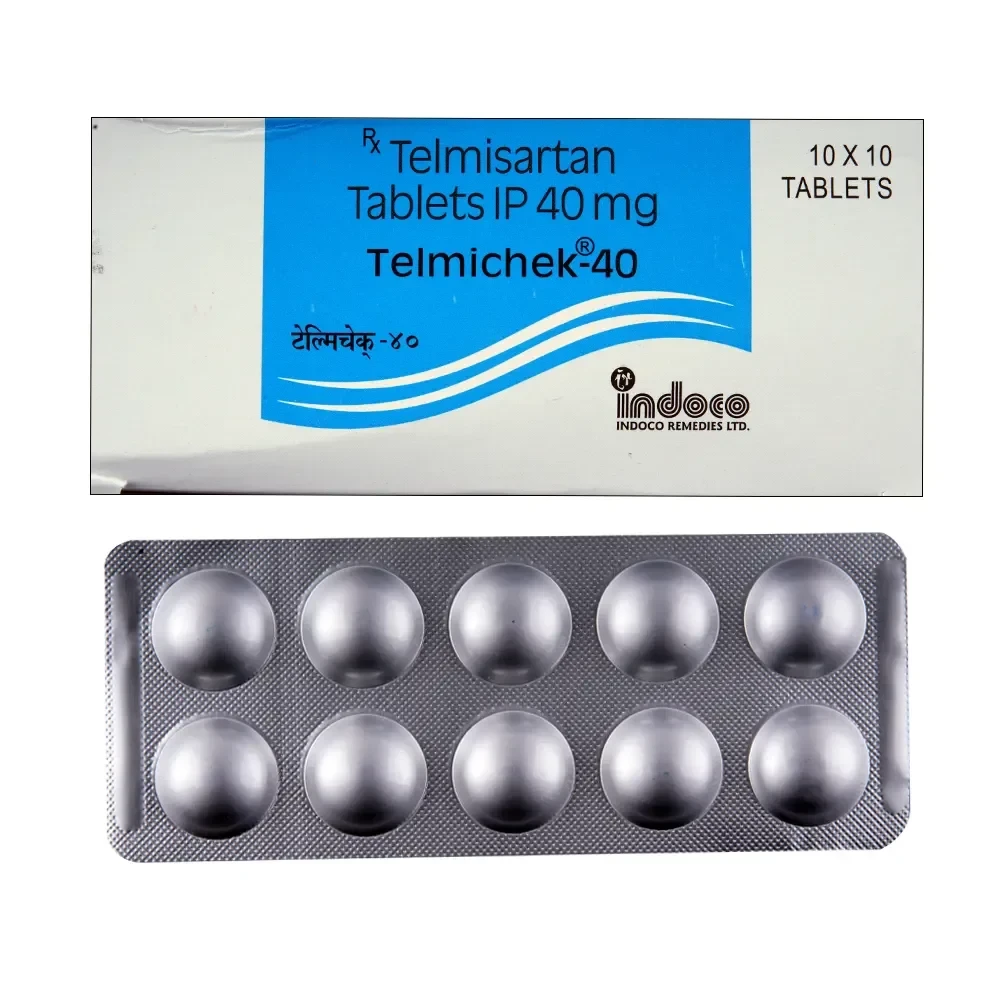 TELMICHEK 40 contains telmisartan, an angiotensin II receptor blocker (ARB), indicated for the treatment of essential hypertension and for reducing the risk of cardiovascular morbidity and mortality in high-risk patients. Telmisartan works by selectively blocking the AT1 receptor, preventing the vasoconstrictive and aldosterone-releasing effects of angiotensin II. This action results in vasodilation, decreased peripheral vascular resistance, and reduced sodium and water retention, leading to a significant reduction in blood pressure. Its prolonged duration of action ensures consistent blood pressure control over 24 hours, making it an effective once-daily treatment. Furthermore, telmisartan has demonstrated benefits in protecting target organs, particularly the kidneys, in hypertensive patients with diabetes.