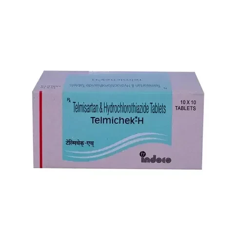 TELMICHEK H TAB is a fixed-dose combination of telmisartan, an angiotensin receptor blocker (ARB), and hydrochlorothiazide, a thiazide diuretic, designed for the effective management of essential hypertension. Telmisartan works by blocking the effects of angiotensin II, a hormone that narrows blood vessels, thereby relaxing them and lowering blood pressure. Hydrochlorothiazide enhances this effect by promoting the excretion of excess salt and water from the body, reducing blood volume. This dual action provides a comprehensive approach to blood pressure control, particularly beneficial for patients who require more aggressive management than monotherapy can offer. The combination helps to achieve target blood pressure levels and reduce the long-term risks associated with uncontrolled hypertension.