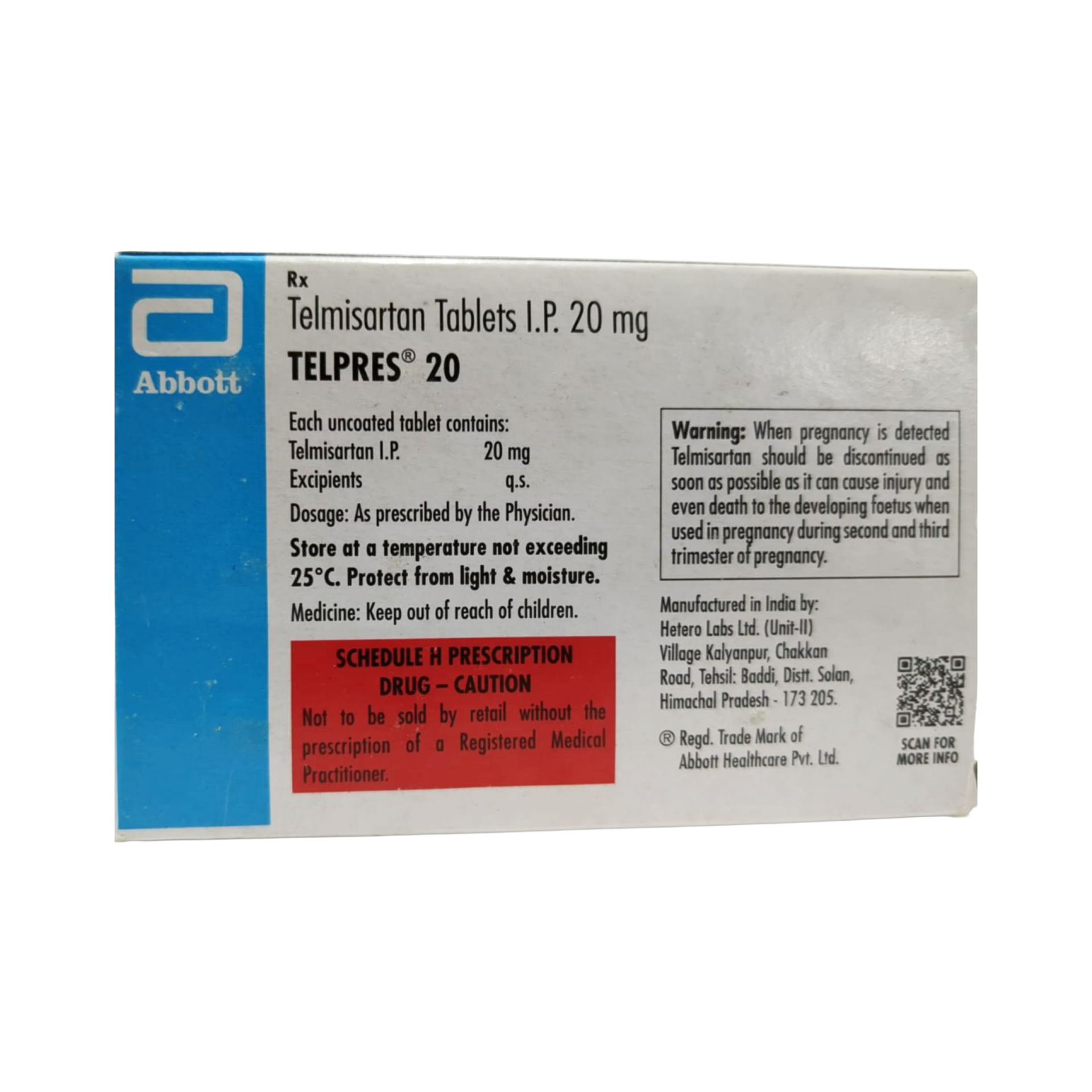 Telpress 20 contains telmisartan, an angiotensin receptor blocker (ARB), and is primarily used for the treatment of essential hypertension. It works by selectively blocking the binding of angiotensin II to its AT1 receptors in various tissues, which prevents the potent vasoconstrictive and aldosterone-secreting effects of angiotensin II. This action leads to vasodilation, a reduction in peripheral vascular resistance, and a decrease in blood pressure. Telmisartan is particularly effective in providing sustained blood pressure control over a 24-hour period with once-daily dosing, which is crucial for preventing morning surges in blood pressure. Furthermore, it has demonstrated benefits in reducing the risk of cardiovascular morbidity and mortality, especially in patients at high risk for cardiovascular events, including those with diabetic nephropathy or a history of stroke or myocardial infarction. It is generally well-tolerated and offers a valuable option for long-term blood pressure management.