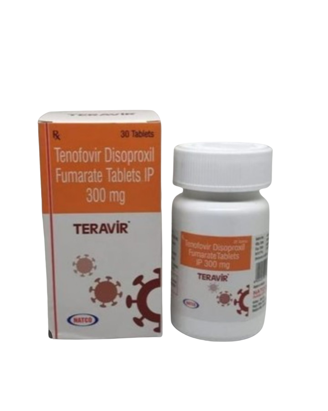 Teravir 300mg Tablet contains the active ingredient Tenofovir Disoproxil Fumarate, an antiretroviral (or antiviral) medication used to treat HIV (Human Immunodeficiency Virus) and HBV (Hepatitis B Virus) infections. It belongs to a class of drugs known as nucleotide reverse transcriptase inhibitors (NRTIs), which work by blocking the enzymes—HIV reverse transcriptase and hepatitis B DNA polymerase—that are essential for viral replication. For HIV treatment, Teravir is always used in combination with other antiretroviral drugs. It is intended for use in adults and adolescents aged 12 to 18 years. In adolescents, it is typically prescribed when other HIV medications are no longer effective due to resistance or have caused significant side effects. The safety of this medicine in patients over 65 years of age has not been established.