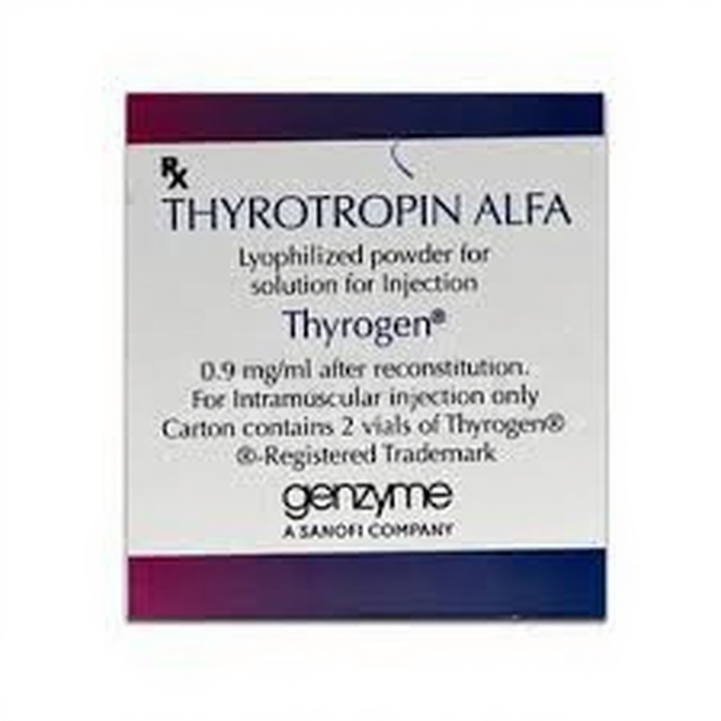 Thyrogen Kit 0.9mg Injection contains Thyrotropin alfa, a recombinant human thyroid-stimulating hormone (TSH). This medication is primarily used as a diagnostic aid in the management of differentiated thyroid cancer. It works by stimulating thyroid tissue, including any remaining thyroid cells or cancerous cells, to produce thyroglobulin and take up iodine. This stimulation is crucial for enhancing the sensitivity of diagnostic tests, such as serum thyroglobulin testing and radioiodine imaging, which are vital for detecting recurrence or persistence of thyroid cancer after thyroidectomy. By providing exogenous TSH, Thyrogen allows patients to undergo these diagnostic procedures without the need for thyroid hormone withdrawal, thereby avoiding the uncomfortable and debilitating symptoms of hypothyroidism.